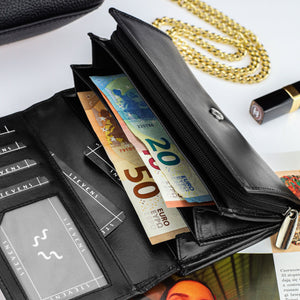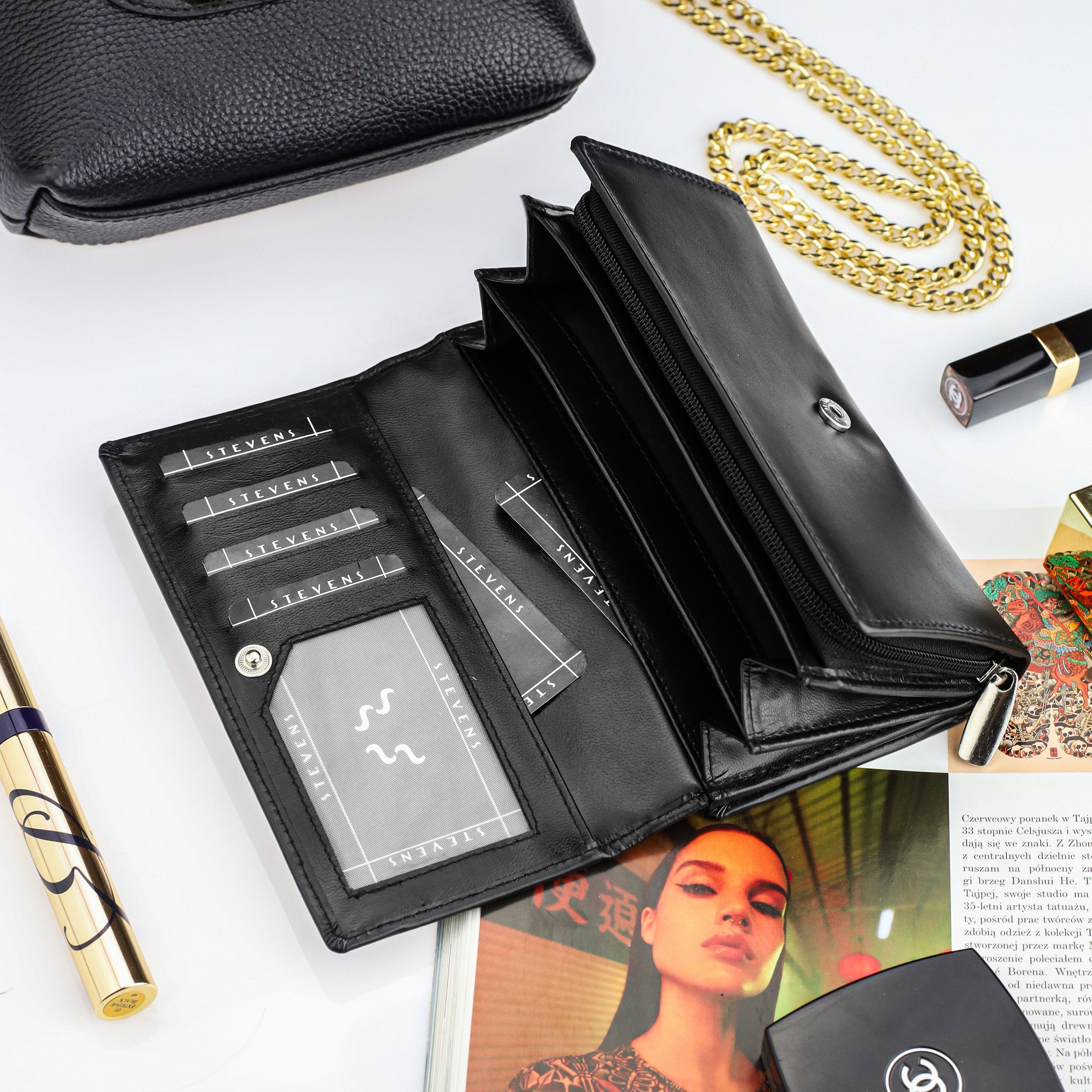 Ši elegantiška moteriška piniginė pagaminta iš aukštos kokybės natūralios odos, užtikrinančios ilgaamžiškumą ir stilių. Piniginė turi integruotą RFID apsaugą, kuri saugo jūsų bekontakčių kortelių duomenis nuo nepageidaujamo nuskaitymo. Ji pristatoma originalioje STEVENS® dėžutėje, todėl puikiai tinka kaip dovana.