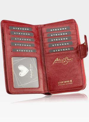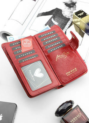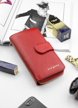 Moteriška odinė piniginė STEVENS su užtrauktuku ir RFID apsauga