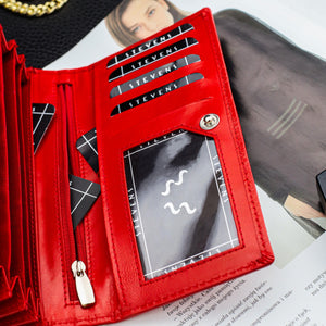 Moteriška odinė piniginė STEVENS Z02 / RB-063M Extended raudona su RFID apsauga
