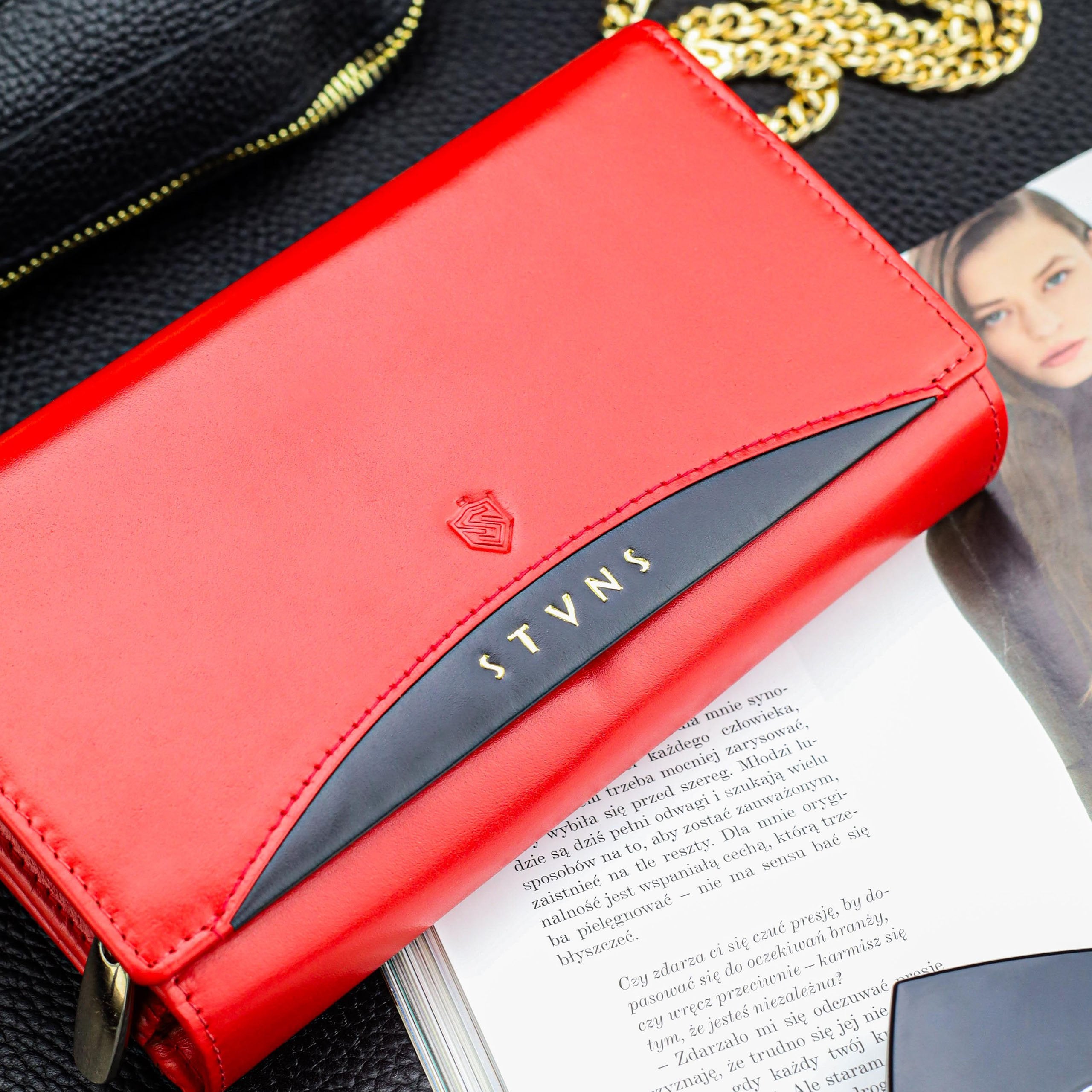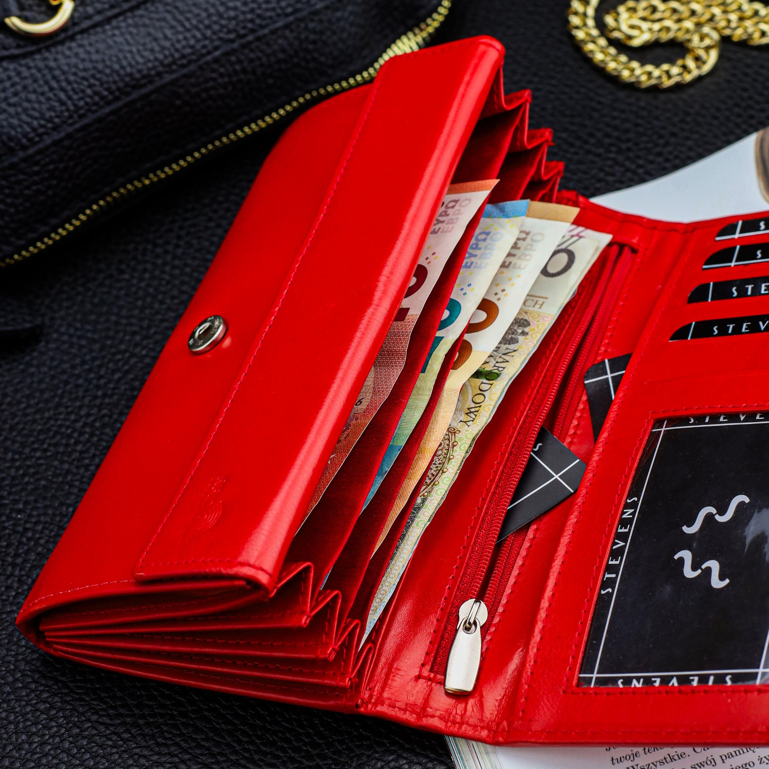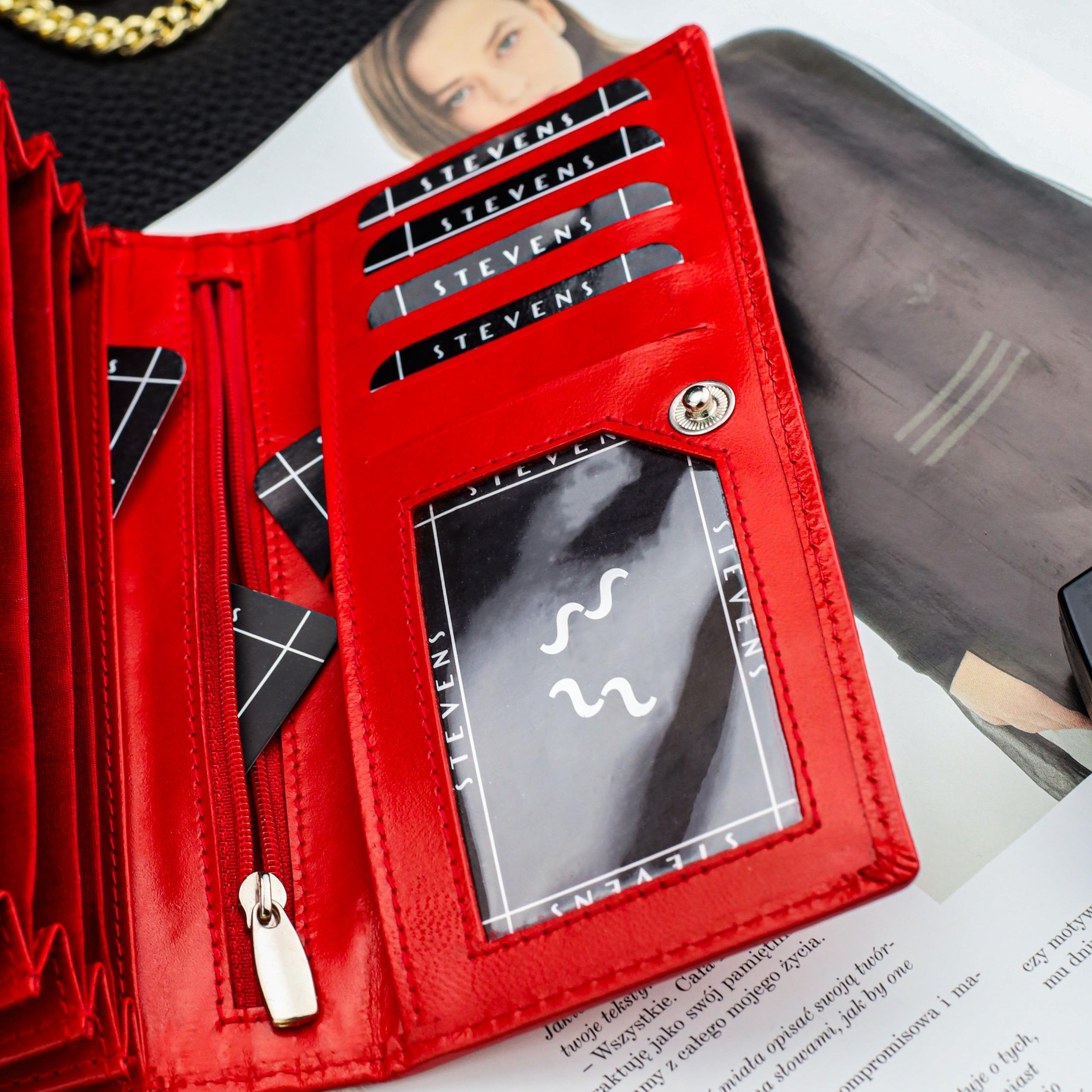 Moteriška odinė piniginė STEVENS Z02 / RB-063M Extended raudona su RFID apsauga D1884