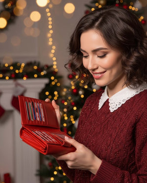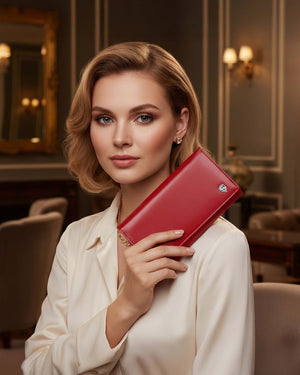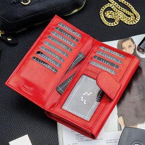 Moteriška odinė piniginė „STEVENS“ Z03-210 raudona su RFID apsauga