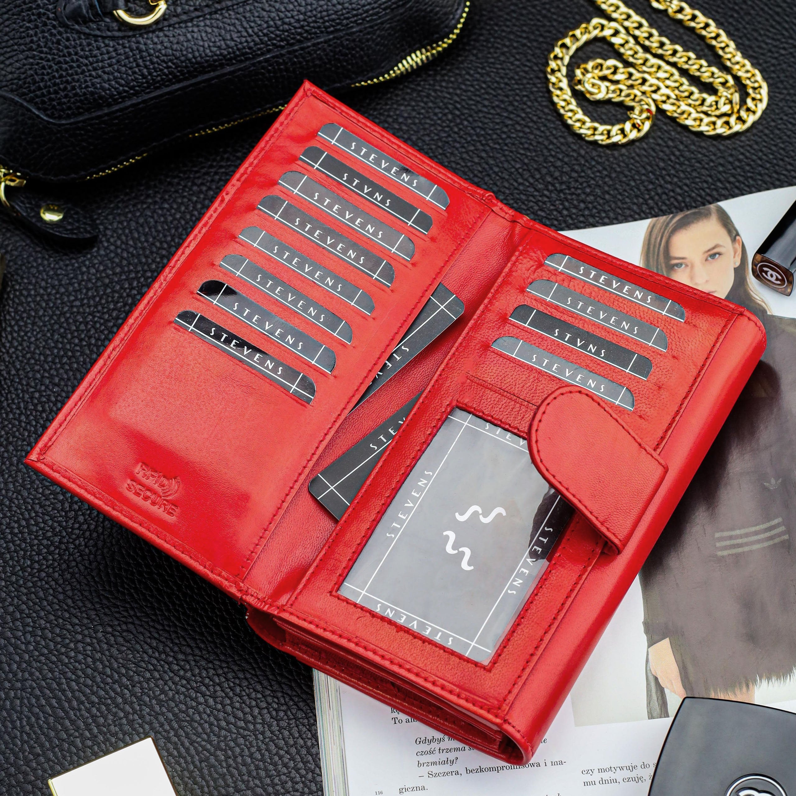 Moteriška odinė piniginė „STEVENS“ Z03-210 raudona su RFID apsauga D1810