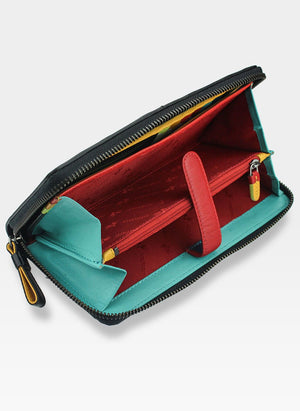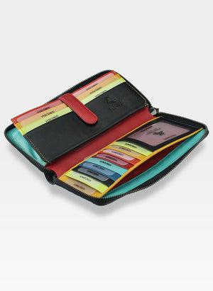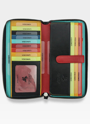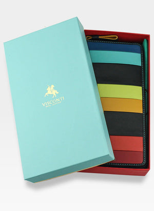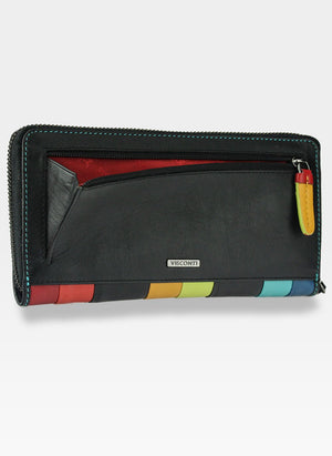 Pristatome išskirtinę moterišką piniginę iš britų prekės ženklo Visconti SANTORINI kolekcijos. Ši elegantiška piniginė, pagaminta iš juodos natūralios odos su vaivorykštės spalvos siūlėmis, puikiai tinka savimi pasitikinčioms ir energingoms moterims, norinčioms išreikšti savo unikalų stilių.