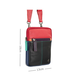 Ši natūralios odos rankinė su ryškiais spalviniais akcentais yra stilinga ir praktiška. Jos kompaktiškas ir elegantiškas dizainas puikiai tinka tiek kasdieniam naudojimui, tiek kelionėms.