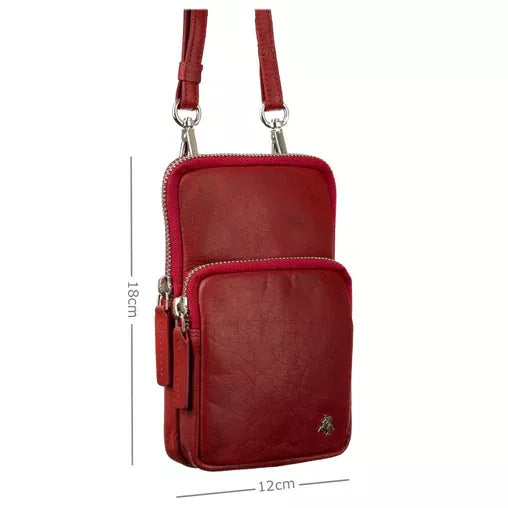 Moteriška odinė rankinė Visconti S-5, raudona, su reguliuojamu dirželiu ir dviem išorinėmis kišenėmis R544