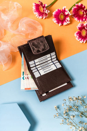 - Kortelės ir dokumentai: 13 vietų mokėjimo kortelėms, vizitinėms kortelėms ir standartinio formato dokumentams. Vienas iš skyrių yra skaidrus, patogus dažnai naudojamiems dokumentams.