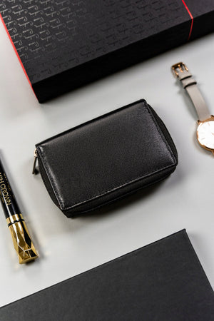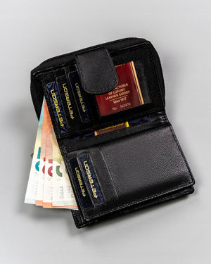 - Apsauga nuo trinties: Kortelių ir dokumentų skyriai yra apsaugoti trinčiai atspariu pamušalu, kuris padeda išvengti odos pažeidimų įdedant ir išimant korteles.