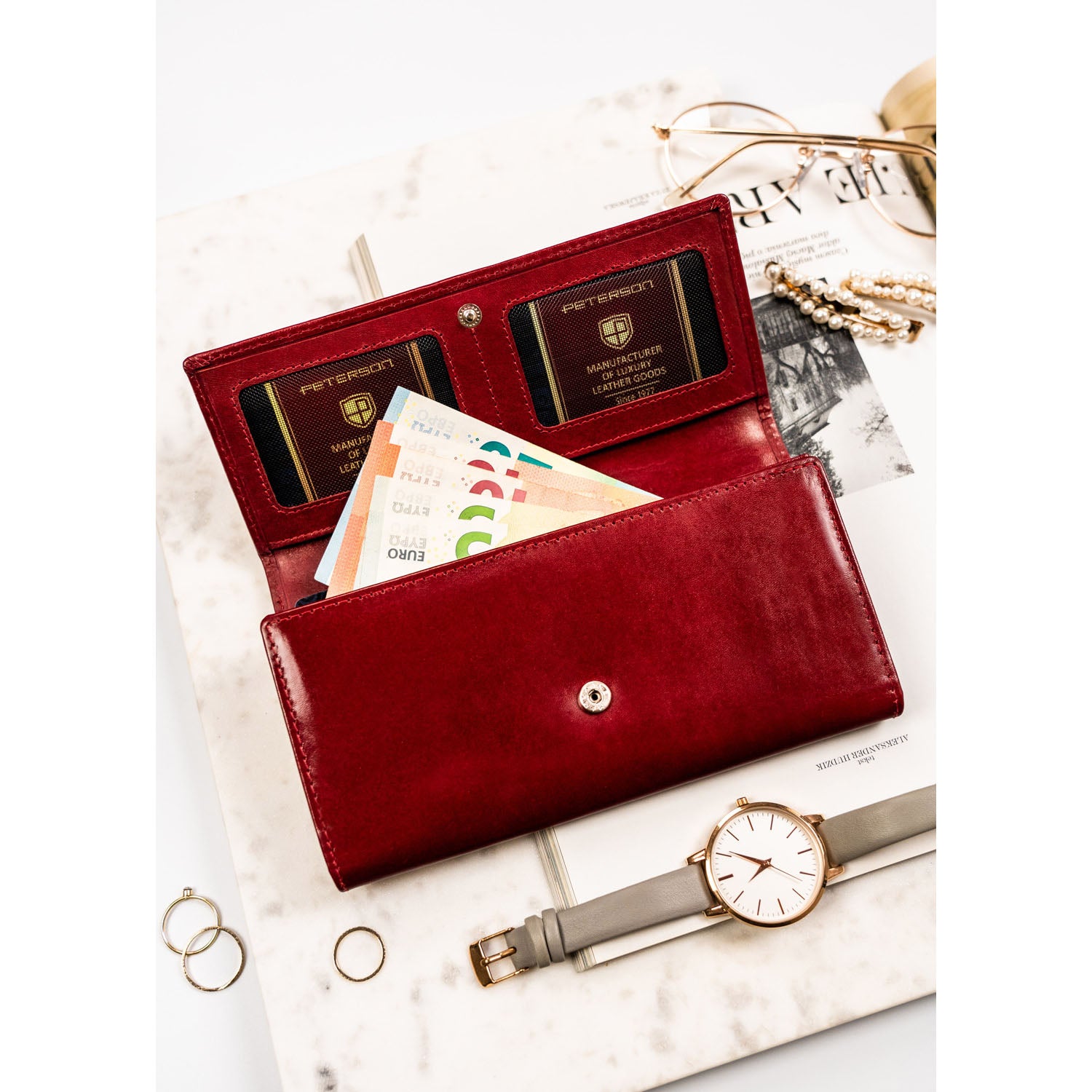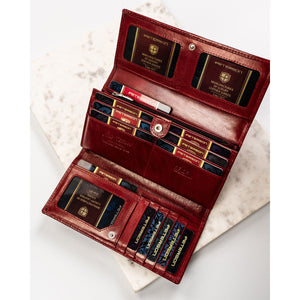 Ši elegantiška moteriška piniginė yra pagaminta iš aukštos kokybės natūralios odos, kuri užtikrina ilgaamžiškumą ir stilingą išvaizdą. Ryški raudona spalva suteikia išskirtinumo ir puikiai tinka miesto ar kasdieniam stiliui.