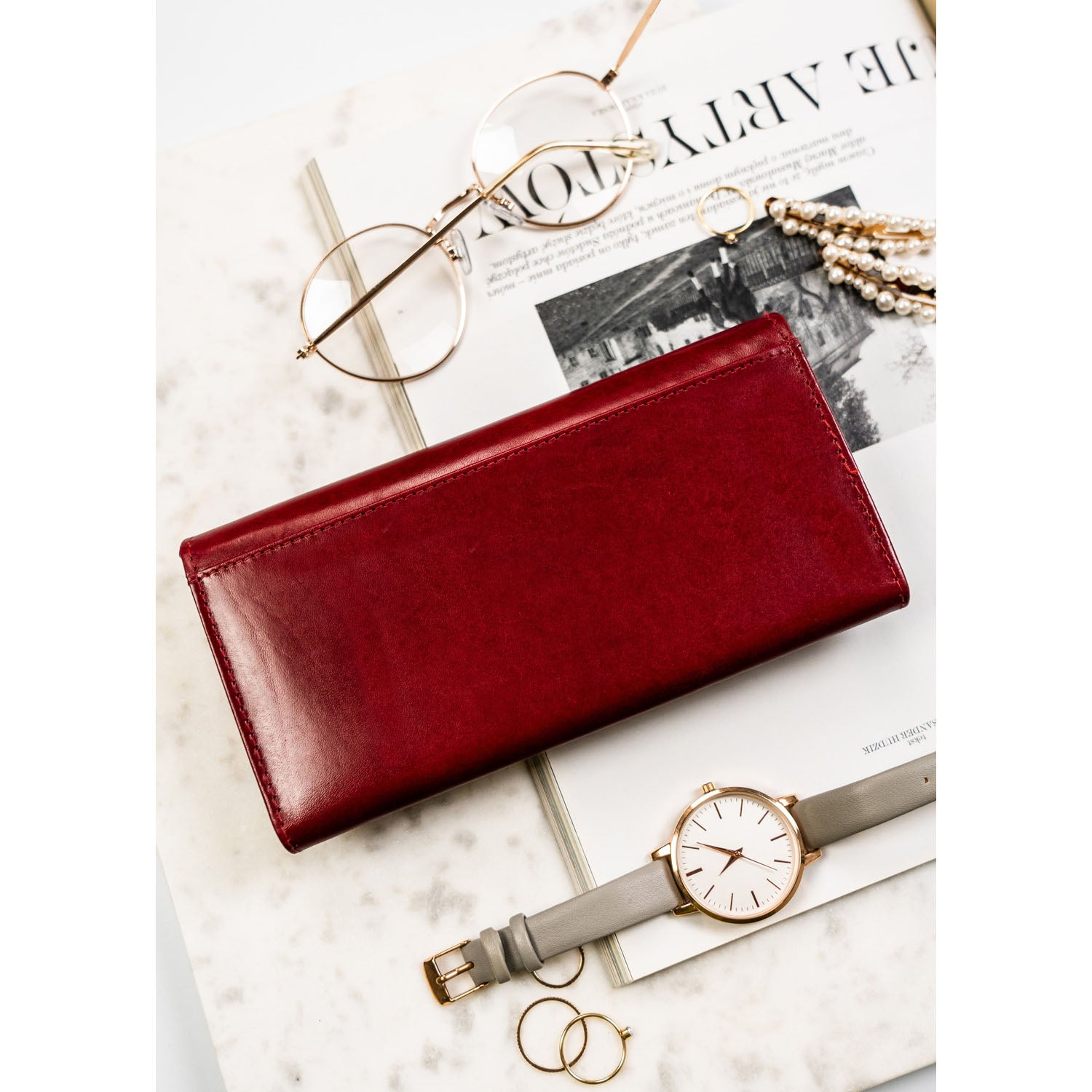 Moteriška piniginė, raudona, odinė