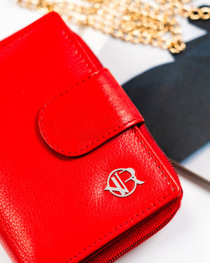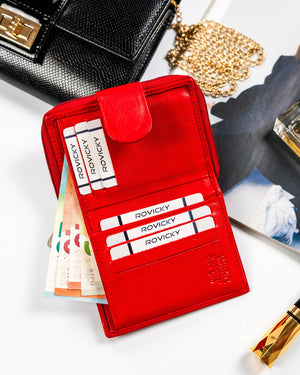 Ši elegantiška moteriška piniginė pagaminta iš aukštos kokybės natūralios raudonos odos, kuri suteikia išskirtinį stilių ir ilgaamžiškumą.