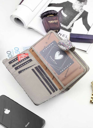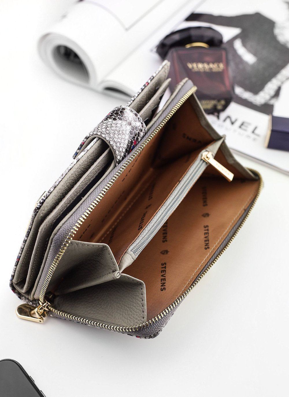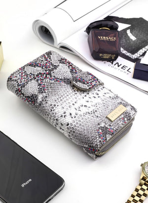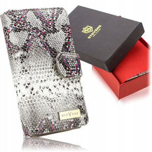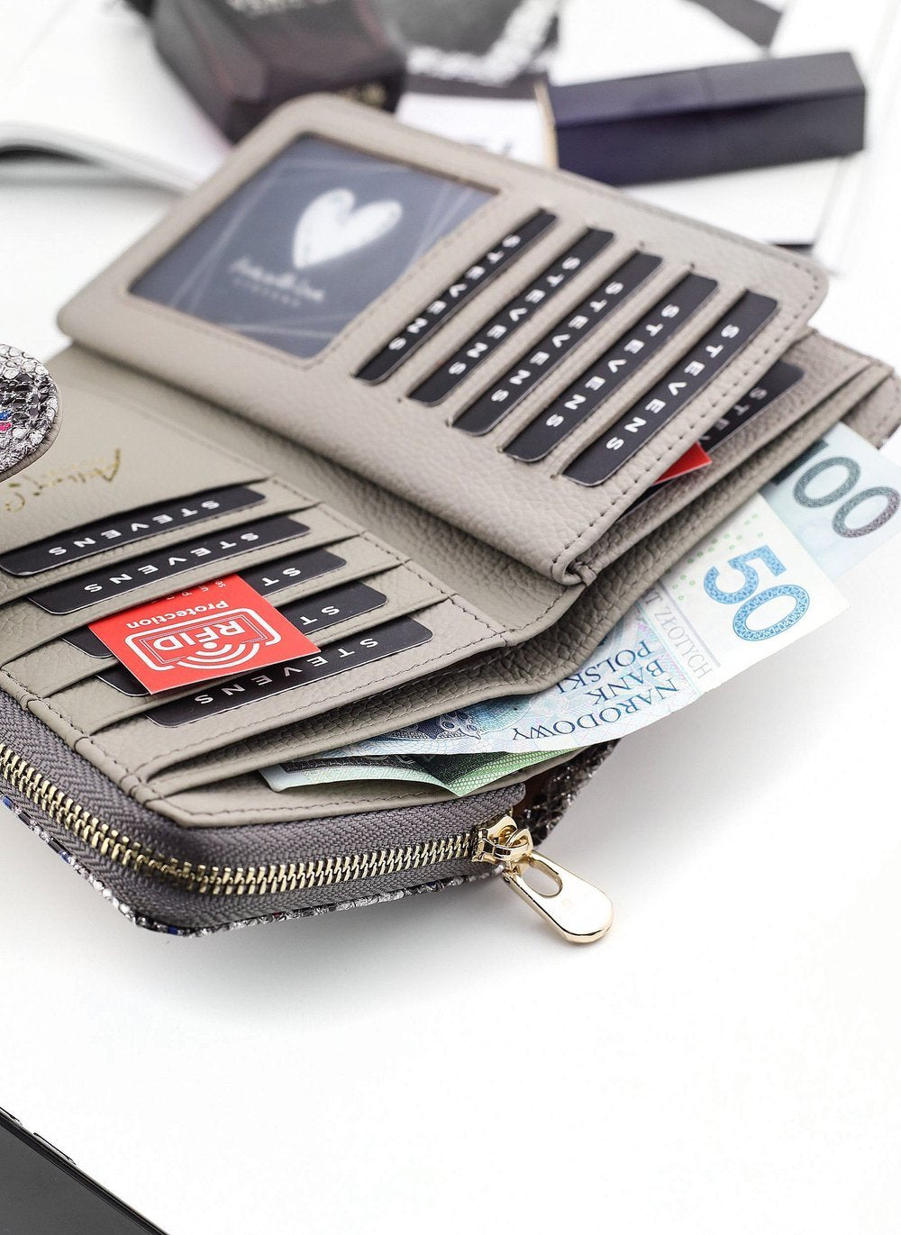Ši elegantiška moteriška piniginė yra pagaminta iš aukštos kokybės natūralios odos ir pristatoma stilingoje dėžutėje. Piniginė užtikrina jūsų kortelių saugumą su integruota RFID apsauga, kuri apsaugo nuo bekontakčių kortelių duomenų nuskaitymo.