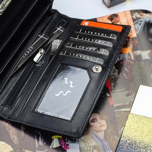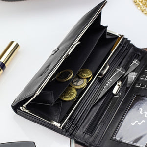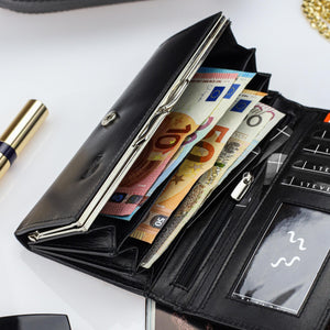 Ši elegantiška moteriška piniginė yra pagaminta iš aukštos kokybės natūralios odos, užtikrinančios ilgaamžiškumą ir stilingą išvaizdą. Piniginė turi integruotą RFID apsaugą, kuri padeda apsaugoti jūsų bekontakčių kortelių duomenis nuo neteisėto nuskaitymo.