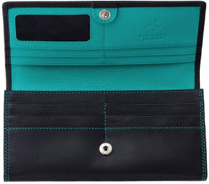 Moteriška piniginė Visconti CD21 yra elegantiškas ir funkcionalus aksesuaras, pagamintas iš aukštos kokybės natūralios odos. Jos vidutinio dydžio dizainas leidžia patogiai laikyti įvairius dokumentus ir korteles, o horizontali orientacija suteikia papildomo patogumo. Piniginė turi du banknotų skyrius, devynis kreditinių kortelių skyrius ir vieną permatomą kišenę, kuri puikiai tinka nuotraukoms ar kitoms svarbioms smulkmenoms. Išorėje ir viduje esanti užsegama monetų kišenė užtikrina, kad viskas bus saugiai laikoma. Piniginė pristatoma su elegantiška dėžute, todėl puikiai tinka dovanai.