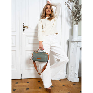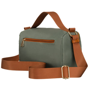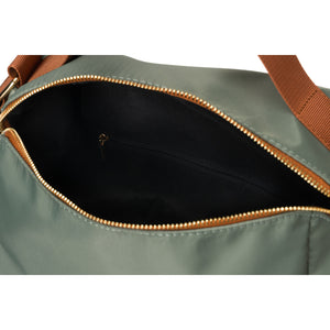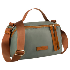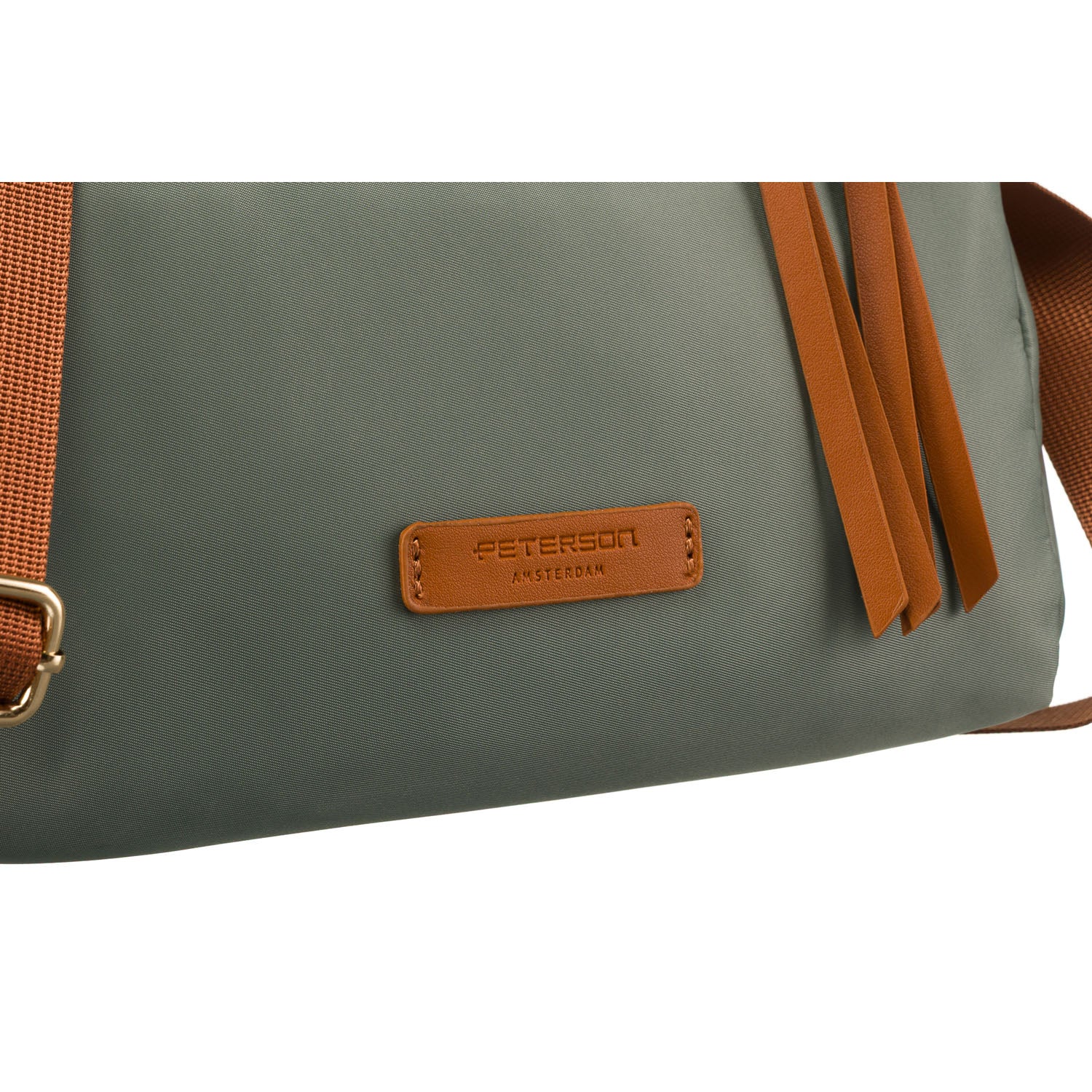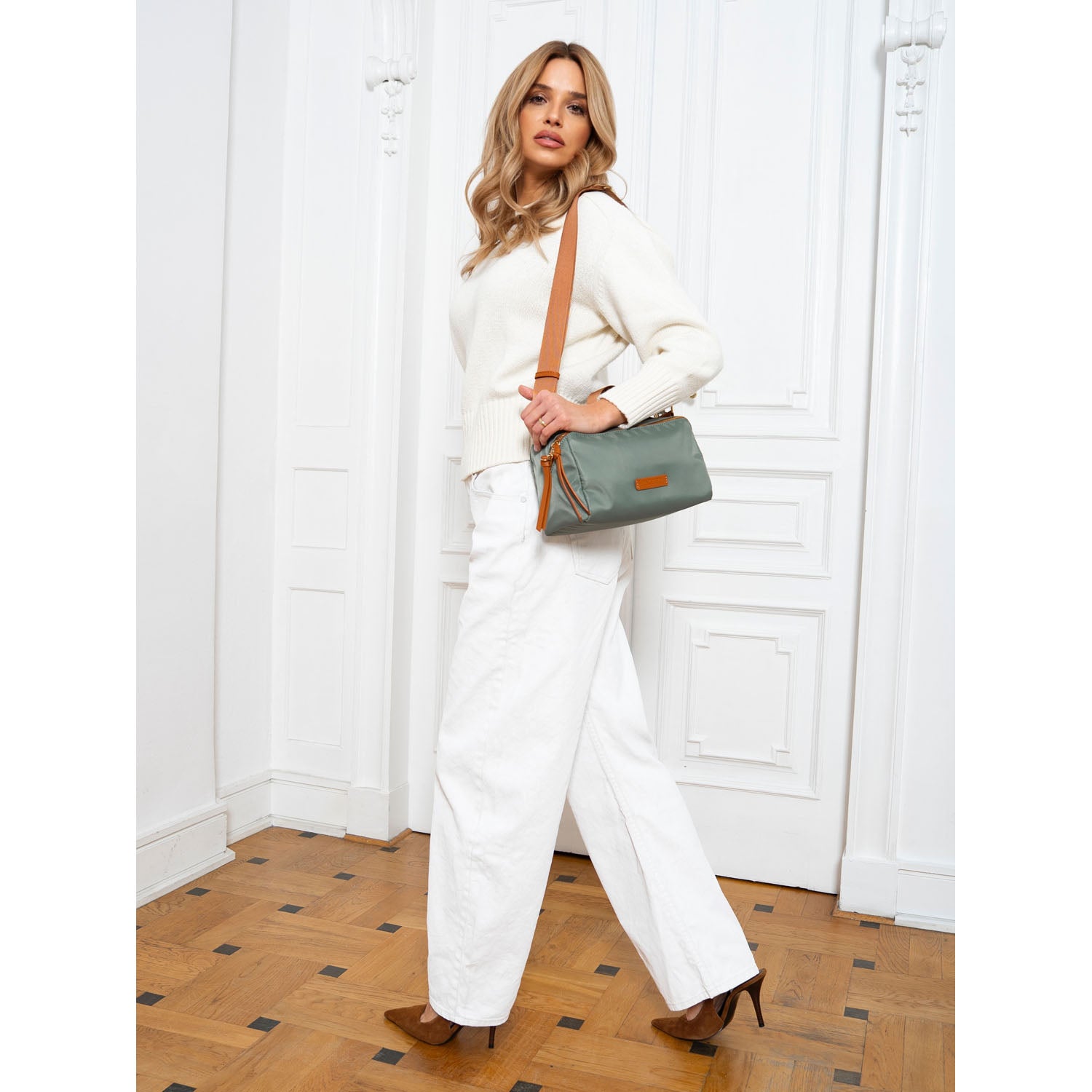 Moteriška rankinė per petį, žalia-ruda, nailonas ir dirbtinė oda R497