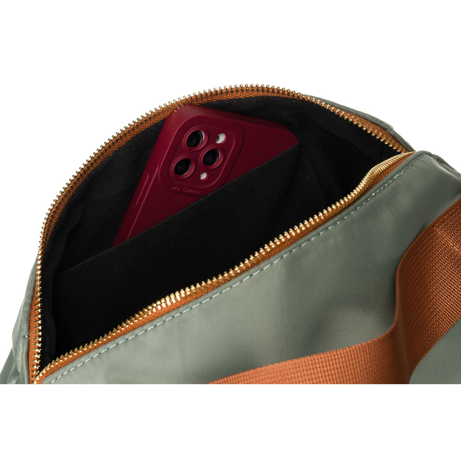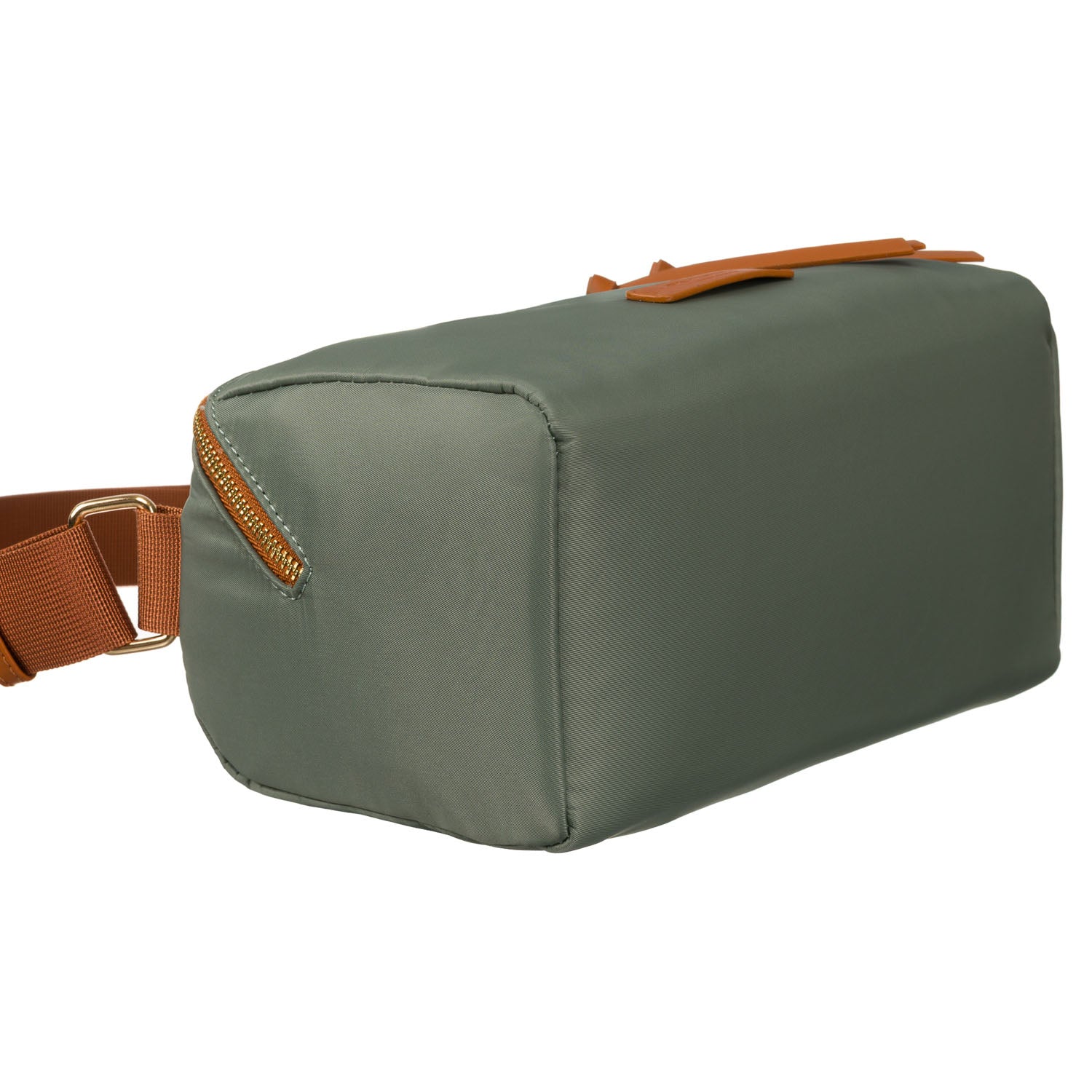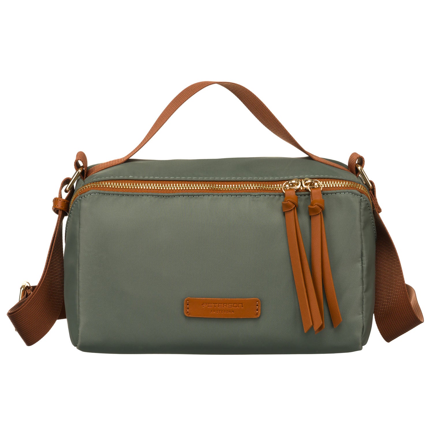Moteriška rankinė per petį, žalia-ruda, nailonas ir dirbtinė oda R497