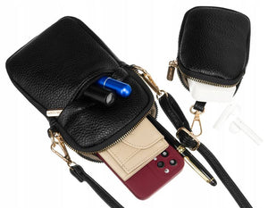 Prie rankinės pritvirtinta nedidelė piniginė, idealiai tinkanti pinigams, raktams ir kitoms smulkmenoms laikyti.