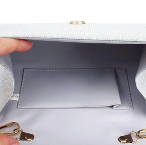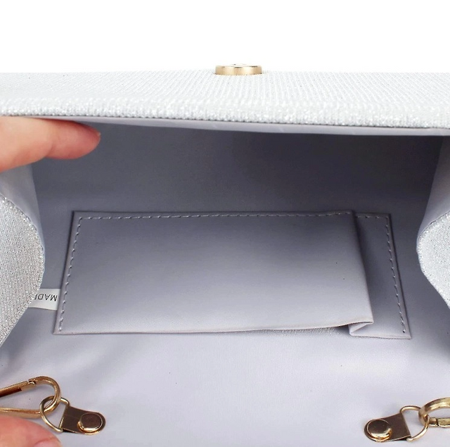 Šis mažas, blizgantis vakarinis rankinukas yra puikus pasirinkimas tiek ypatingoms progoms, tiek kasdieniam naudojimui. Rankinukas užsegamas patogiu magnetiniu užtrauktuku, o jo viduje rasite vieną didelį skyrių ir mažą kišenę smulkmenoms.
