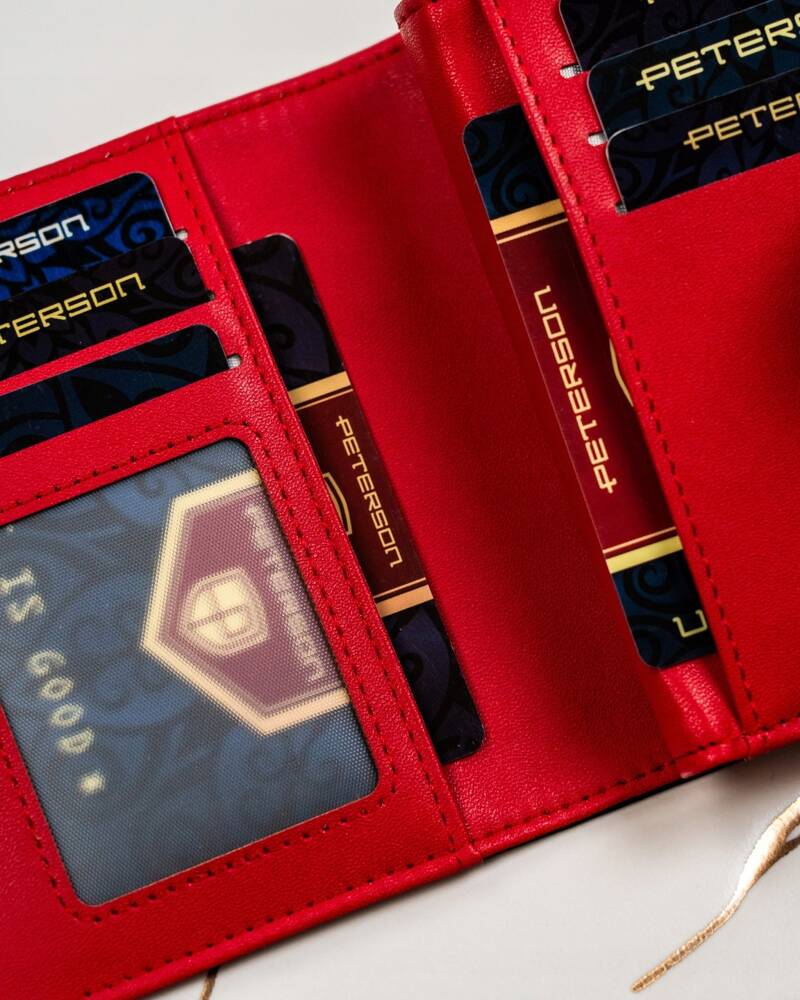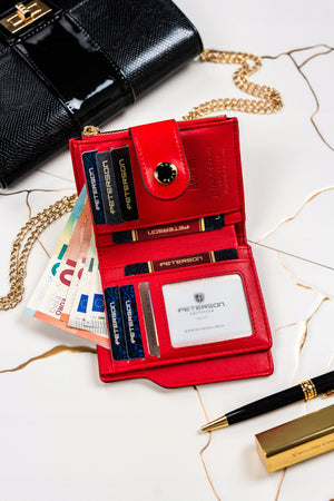Ši elegantiška moteriška piniginė iš Peterson kolekcijos yra puikus pasirinkimas ieškantiems stilingo ir praktiško aksesuaro.