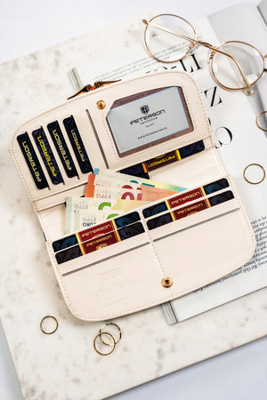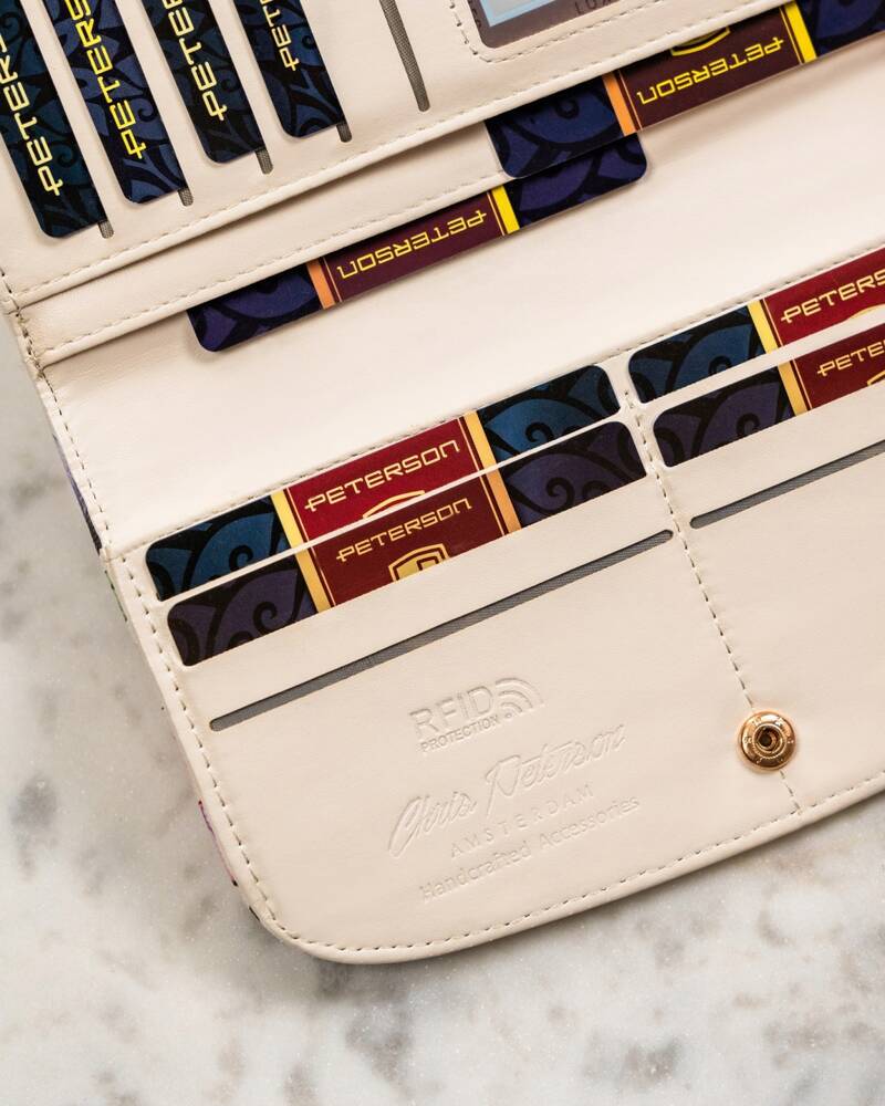 Ši elegantiška moteriška piniginė iš Peterson kolekcijos yra puikus pasirinkimas ieškantiems kokybės ir stiliaus. Pagaminta iš aukštos kokybės ekologinės odos, ši piniginė ne tik atrodo prabangiai, bet ir yra ilgaamžė.
