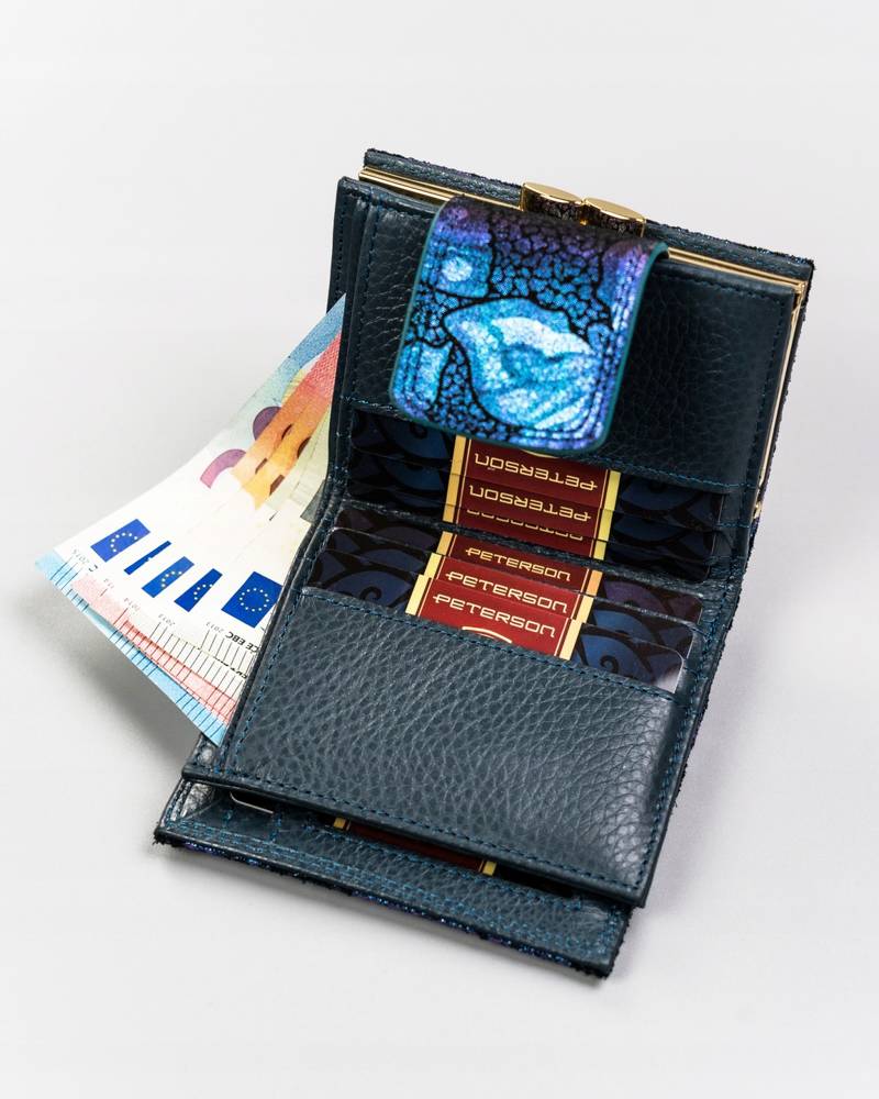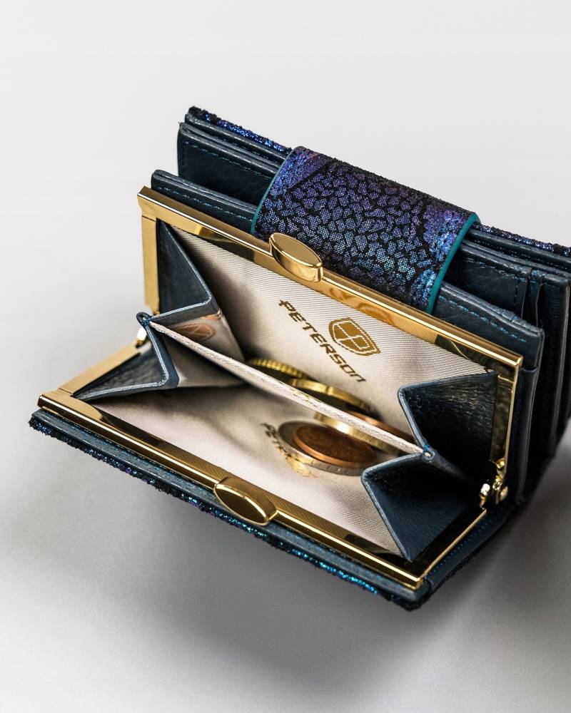 Ši elegantiška moteriška piniginė iš Peterson kolekcijos yra pagaminta iš aukštos kokybės natūralios odos, kuri užtikrina ilgaamžiškumą ir stilingą išvaizdą. Mėlyna spalva suteikia šiai piniginei išskirtinumo ir elegancijos.