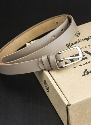 Modelis Kate – klasikinis, plonas moteriškas diržas, skirtas kelnėms ir suknelėms. Yra kelių spalvų variantų. Sidabro spalvos sagtis pagaminta iš aukštos kokybės metalo lydinio. 2 cm pločio diržas puikiai tinka ir prie džinsų, ir prie lengvos suknelės.