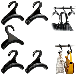 Šis elegantiškas 5 kabliukų komplektas yra puikus sprendimas jūsų spintai, skirtas patogiai laikyti rankines ir krepšius.