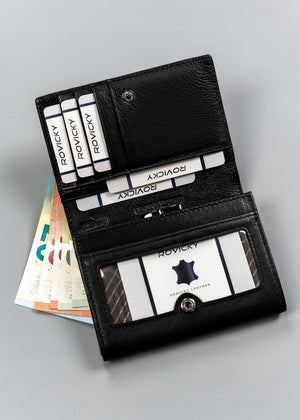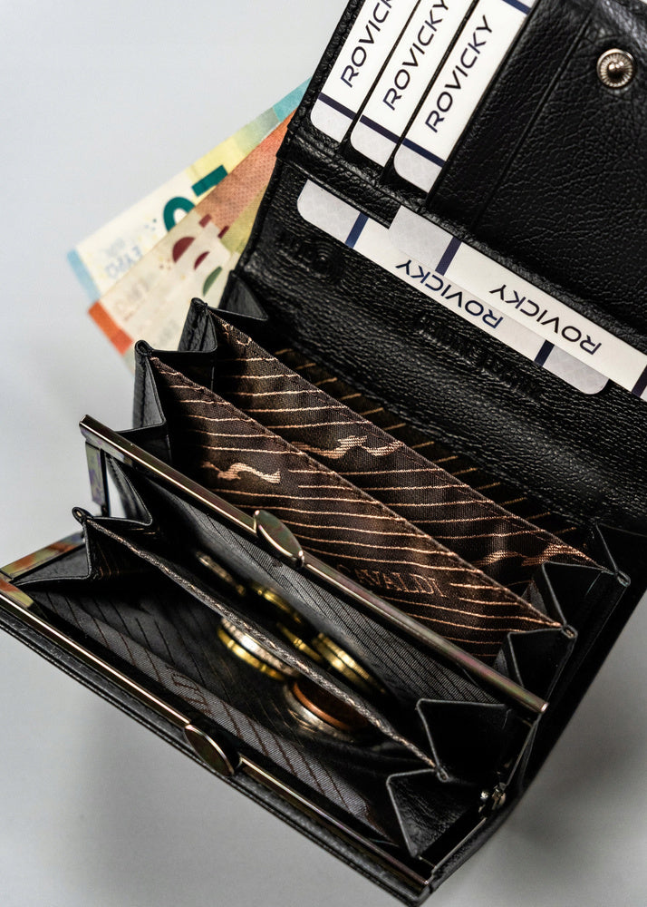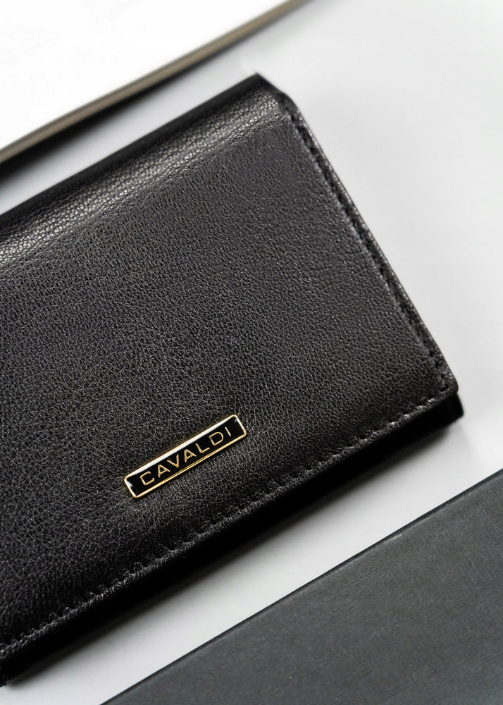 Elegantiška ir funkcionali moteriška piniginė iš 4U CAVALDI, pagaminta iš aukštos kokybės natūralios odos. Ši juodos spalvos piniginė puikiai tiks tiek kasdieniam naudojimui, tiek ypatingoms progoms.