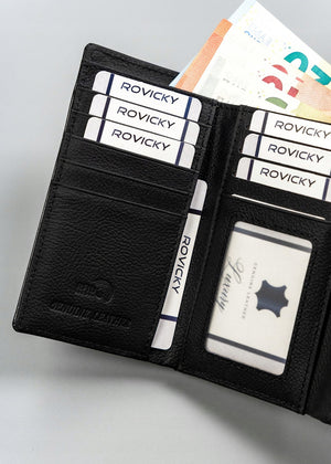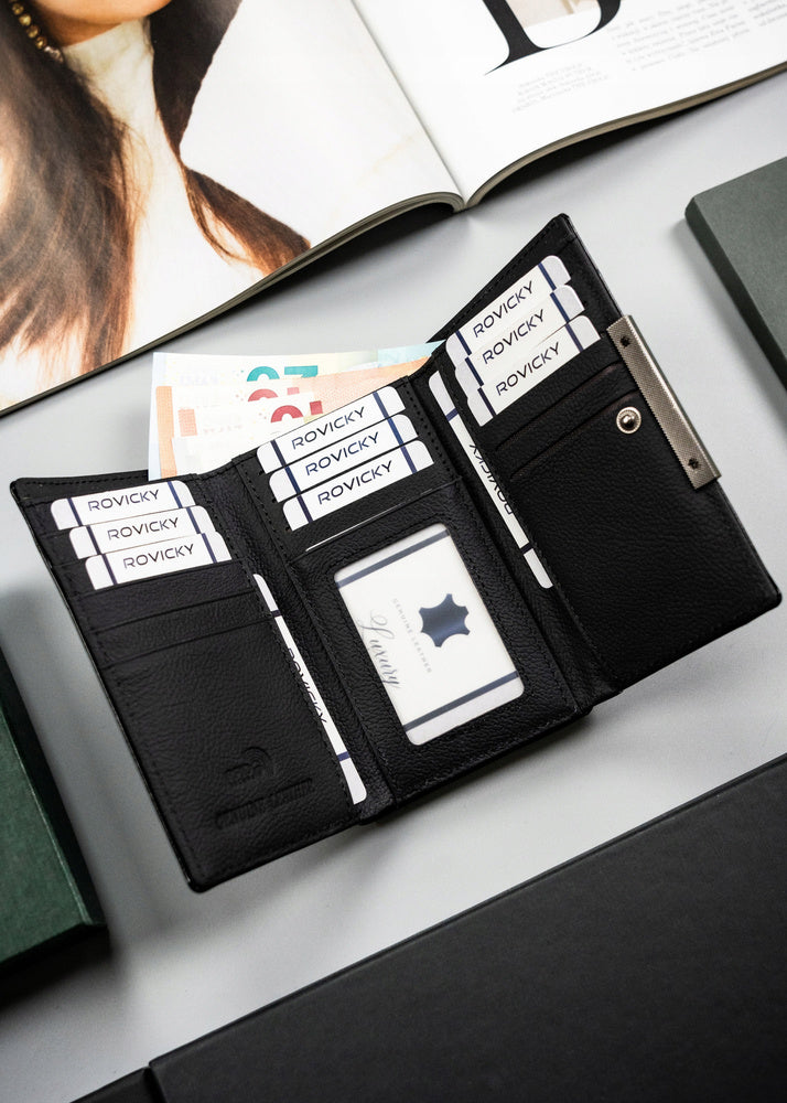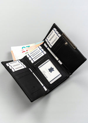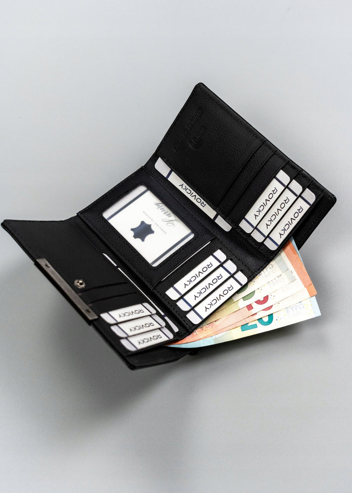 Ši piniginė ne tik apsaugo jūsų korteles nuo nepageidaujamo nuskaitymo su RFID technologija, bet ir suteikia pakankamai vietos visiems jūsų svarbiausiems daiktams. Jos klasikinė juoda spalva puikiai derės prie bet kokio stiliaus.