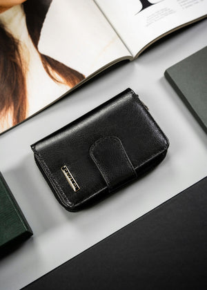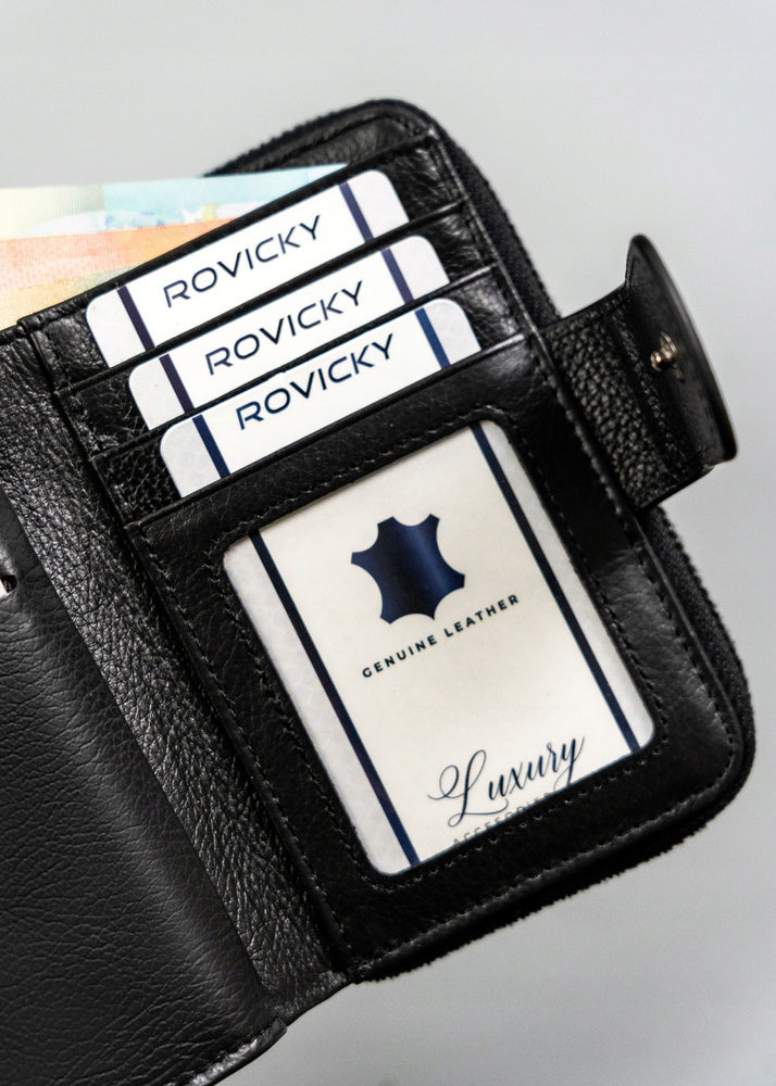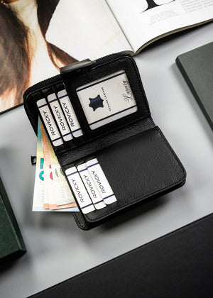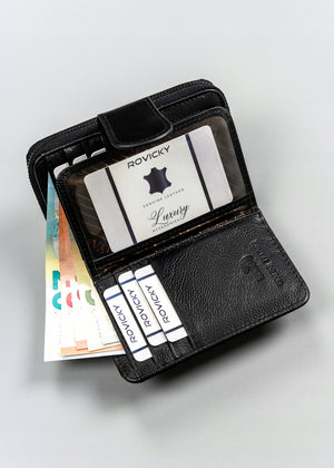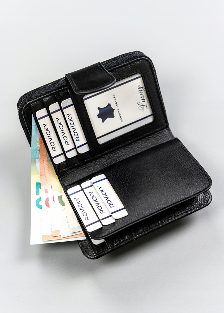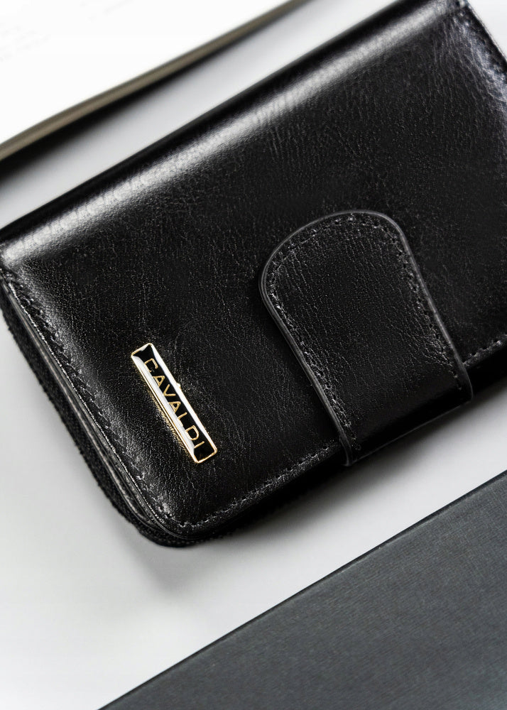 Elegantiška ir funkcionali moteriška piniginė iš 4U CAVALDI, pagaminta iš aukštos kokybės natūralios odos. Ši juodos spalvos piniginė puikiai tiks tiek kasdieniam naudojimui, tiek ypatingoms progoms.