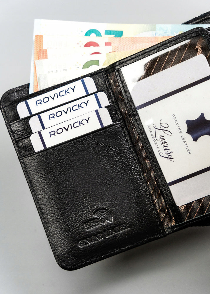 Ši piniginė ne tik stilinga, bet ir praktiška, su pakankamai vietos kortelėms ir monetoms. RFID apsauga užtikrina jūsų duomenų saugumą, todėl galite jaustis ramiai dėl savo asmeninės informacijos apsaugos.