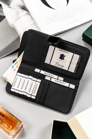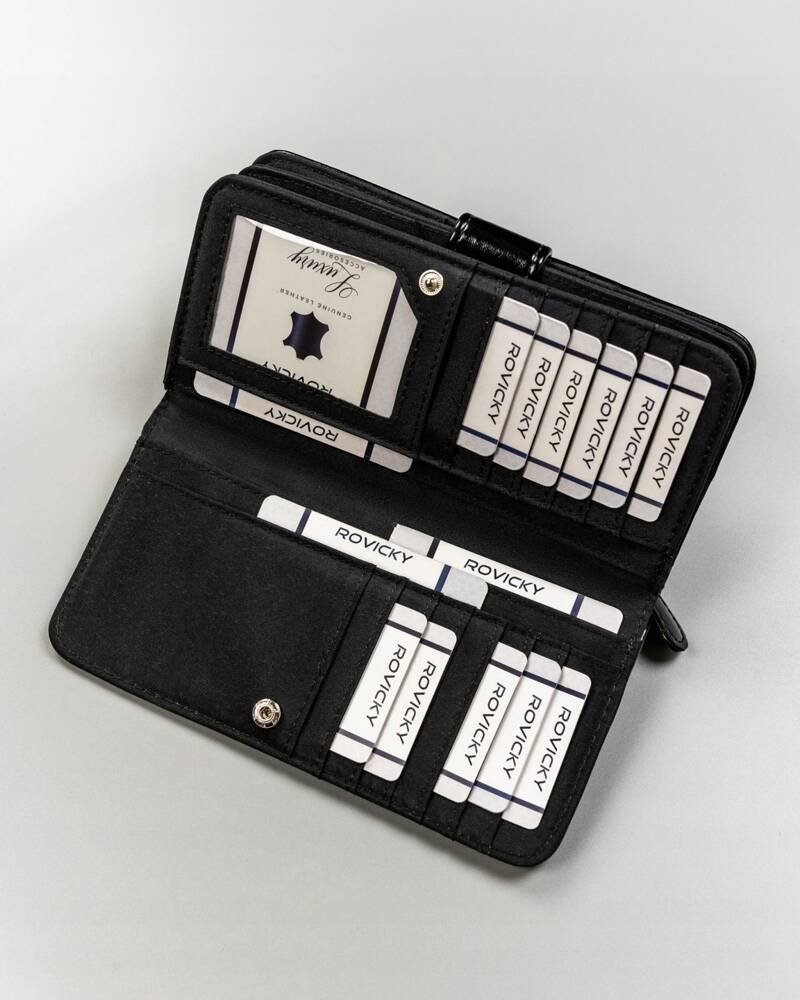 Ši elegantiška juoda moteriška piniginė iš 4U Cavaldi yra puikus pasirinkimas tiems, kurie vertina stilių ir funkcionalumą. Pagaminta iš dirbtinės odos, ji suteikia prabangos pojūtį ir yra itin talpi, turinti daugiau nei 20 kortelių skyrių bei atskirą skyrelį monetoms. Nors neturi RFID apsaugos, jos didelis dydis ir praktiškas dizainas užtikrina, kad viskas, ko jums reikia, bus po ranka.