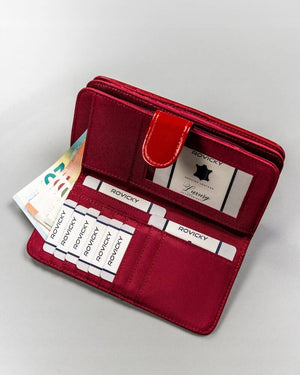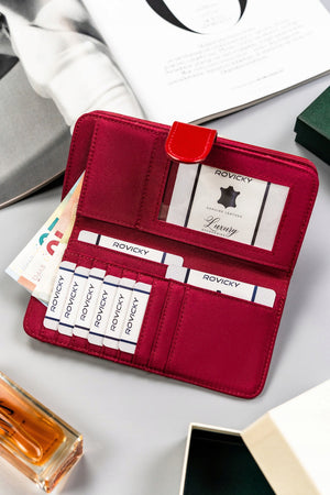Ši elegantiška ir talpi piniginė puikiai tiks moterims, vertinančioms praktiškumą ir stilių. Tamsiai raudona spalva suteikia išskirtinumo, o didelis dydis užtikrina, kad visos jūsų kortelės ir monetos bus tvarkingai sudėtos.