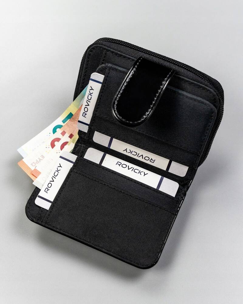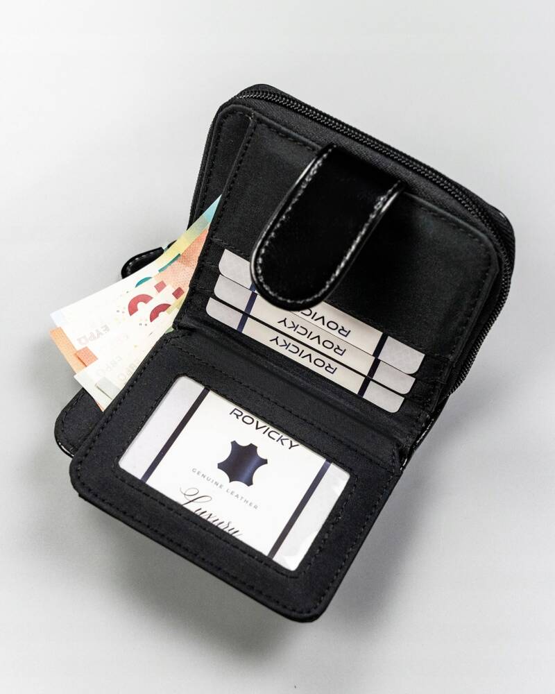 Ši elegantiška juoda moteriška piniginė iš 4U Cavaldi yra pagaminta iš kokybiškos dirbtinės odos. Ji puikiai tinka kasdieniam naudojimui, suteikdama pakankamai vietos kortelėms ir monetoms. Nors neturi RFID apsaugos, piniginė išsiskiria savo funkcionalumu ir stilingu dizainu.