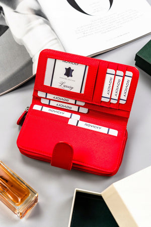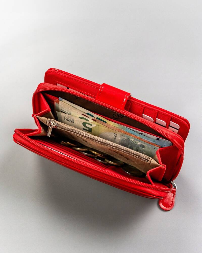 Ši 4U Cavaldi moterų piniginė yra pagaminta iš aukštos kokybės ekologiškos odos, kuri užtikrina ilgaamžiškumą ir stilingą išvaizdą. Ryški raudona spalva suteikia elegancijos ir išskirtinumo. Piniginė yra didelė, todėl joje lengvai tilps visos jūsų kortelės ir grynieji pinigai. Nors RFID apsaugos nėra, piniginė turi daugiau nei 10 kortelių skyrių ir atskirą skyrelį monetoms, kas padės patogiai organizuoti jūsų finansus. Jos išmatavimai – 17,5 cm x 10 cm x 3 cm – leidžia patogiai nešiotis kasdien.