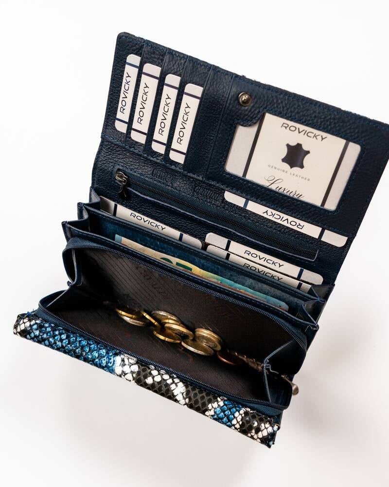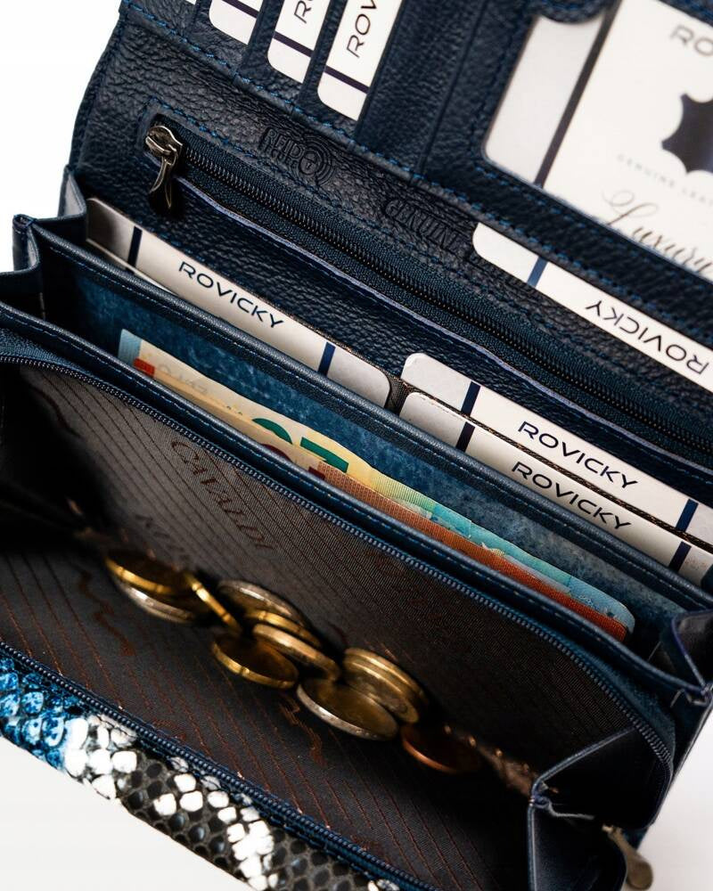 Ši elegantiška moteriška piniginė iš Cavaldi yra puikus pasirinkimas tiems, kurie vertina kokybę ir funkcionalumą. Pagaminta iš natūralios ir eko odos, ji ne tik atrodo stilingai, bet ir yra patvari. Tamsiai mėlyna ir sidabrinė spalvos suteikia jai išskirtinumo, o didelis dydis užtikrina, kad viskas, ko jums reikia, tilps vienoje vietoje.