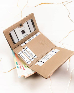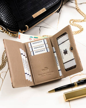 Ši piniginė yra puikus pasirinkimas moterims, vertinančioms praktiškumą ir stilių. Kompaktiškas dydis leidžia lengvai ją nešiotis rankinėje, o funkcionalūs skyriai padeda tvarkingai laikyti korteles ir monetas.