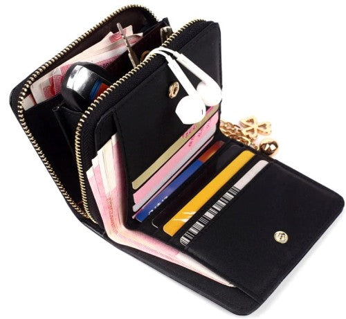 - Patogi piniginė su užtrauktuku, užtikrinančiu saugumą.