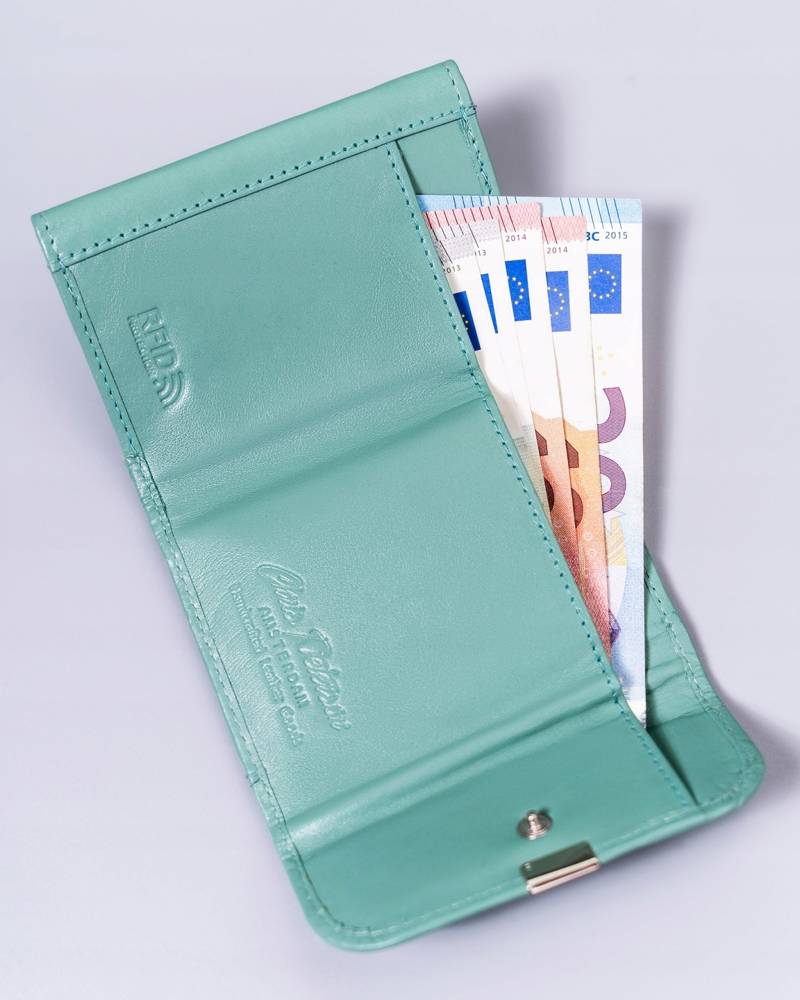 Ši piniginė yra puikus pasirinkimas kasdieniam naudojimui, užtikrinanti patogumą ir funkcionalumą. Jos kompaktiškas dydis leidžia lengvai tilpti į bet kokią rankinę ar kišenę, o šviesiai mėlyna spalva suteikia išskirtinumo.