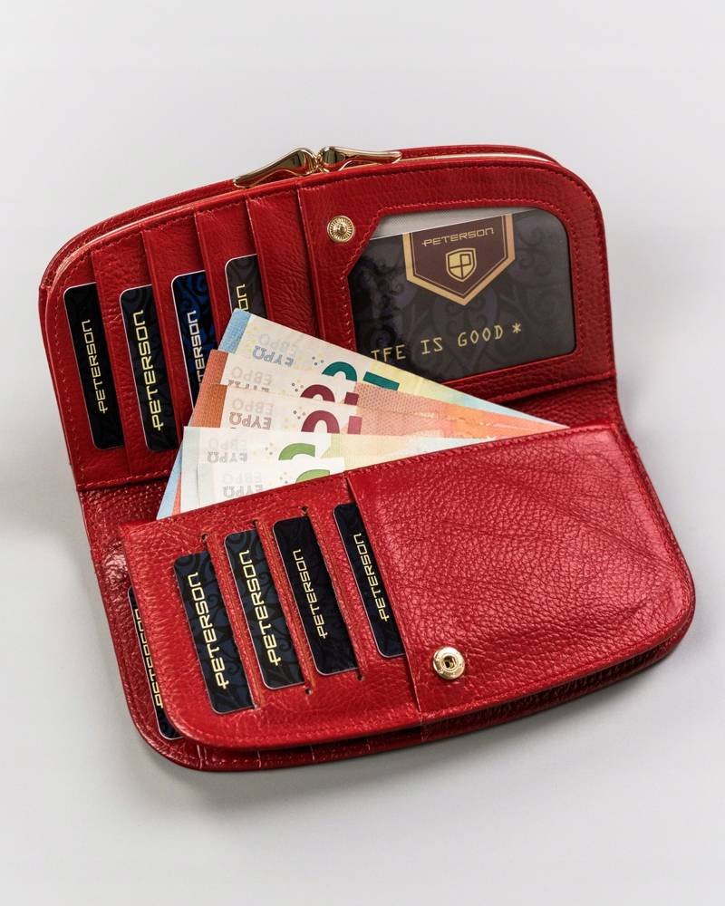 Ši elegantiška moteriška piniginė iš Peterson yra pagaminta iš aukštos kokybės natūralios odos, kuri užtikrina ilgaamžiškumą ir stilingą išvaizdą. Ryški raudona spalva suteikia išskirtinumo ir elegancijos.