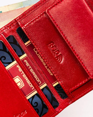 Ši elegantiška ir kompaktiška moteriška piniginė iš Peterson yra puikus pasirinkimas tiems, kurie vertina kokybę ir stilių. Pagaminta iš natūralios odos, ji ne tik atrodo prabangiai, bet ir yra ilgaamžė. Raudona spalva suteikia išskirtinumo, o mažas dydis leidžia patogiai nešiotis kasdien. Piniginėje yra pakankamai vietos kortelėms ir monetoms, todėl ji yra praktiška ir funkcionali.