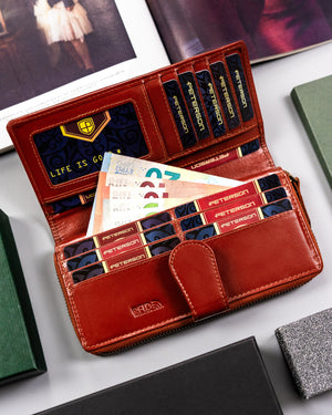 Ši elegantiška moteriška piniginė iš Peterson prekės ženklo yra puikus pasirinkimas ieškantiems kokybės ir stiliaus. Pagaminta iš aukštos kokybės natūralios odos, ši piniginė ne tik atrodo prabangiai, bet ir yra ilgaamžė.