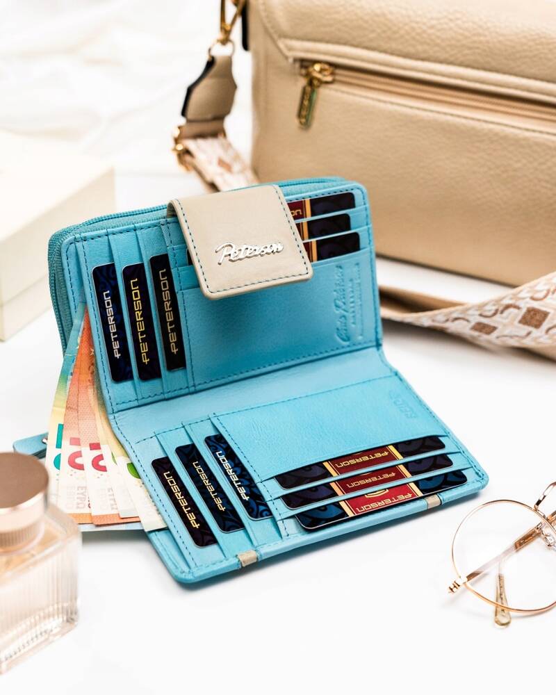 Ši elegantiška moteriška piniginė iš Peterson kolekcijos yra pagaminta iš aukštos kokybės natūralios odos. Mėlyna spalva suteikia jai išskirtinumo ir stiliaus. Vidutinio dydžio piniginė puikiai tiks kasdieniam naudojimui, o jos funkcionalumas užtikrins, kad viskas būtų tvarkingai sudėliota. Su 6-10 kortelių skyriais ir atskiru monetų skyriumi, ši piniginė patenkins visus jūsų poreikius.