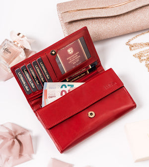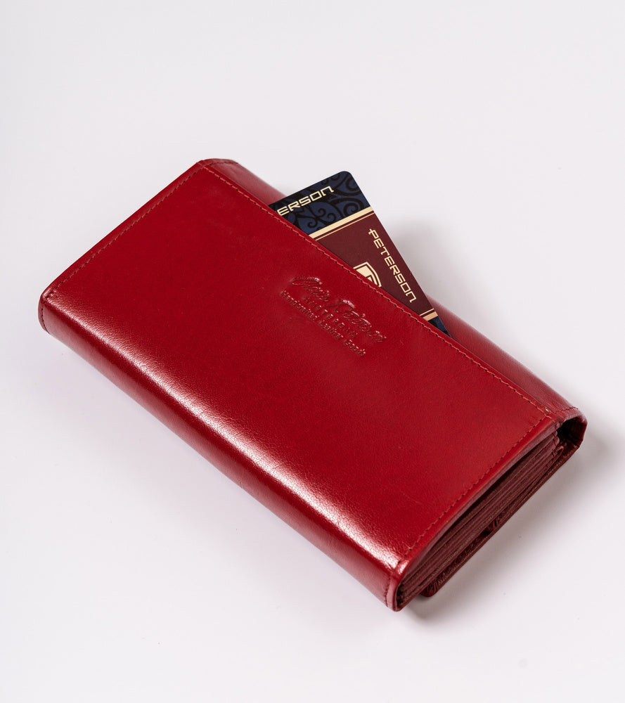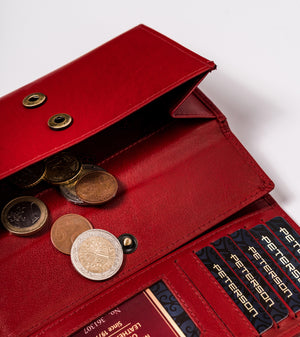 Ši elegantiška moteriška piniginė iš Peterson yra pagaminta iš aukštos kokybės natūralios odos, kuri užtikrina ilgaamžiškumą ir stilingą išvaizdą. Raudona spalva suteikia išskirtinumo, o didelis dydis leidžia patogiai laikyti visus būtiniausius daiktus. Piniginėje yra 6-10 kortelių skyrių ir atskiras skyrius monetoms, todėl ji yra itin praktiška kasdieniam naudojimui.