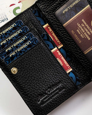 - Kortelių ir dokumentų skyriai yra apsaugoti pamušalu, kuris padeda išvengti odos įbrėžimų dažnai naudojant.
