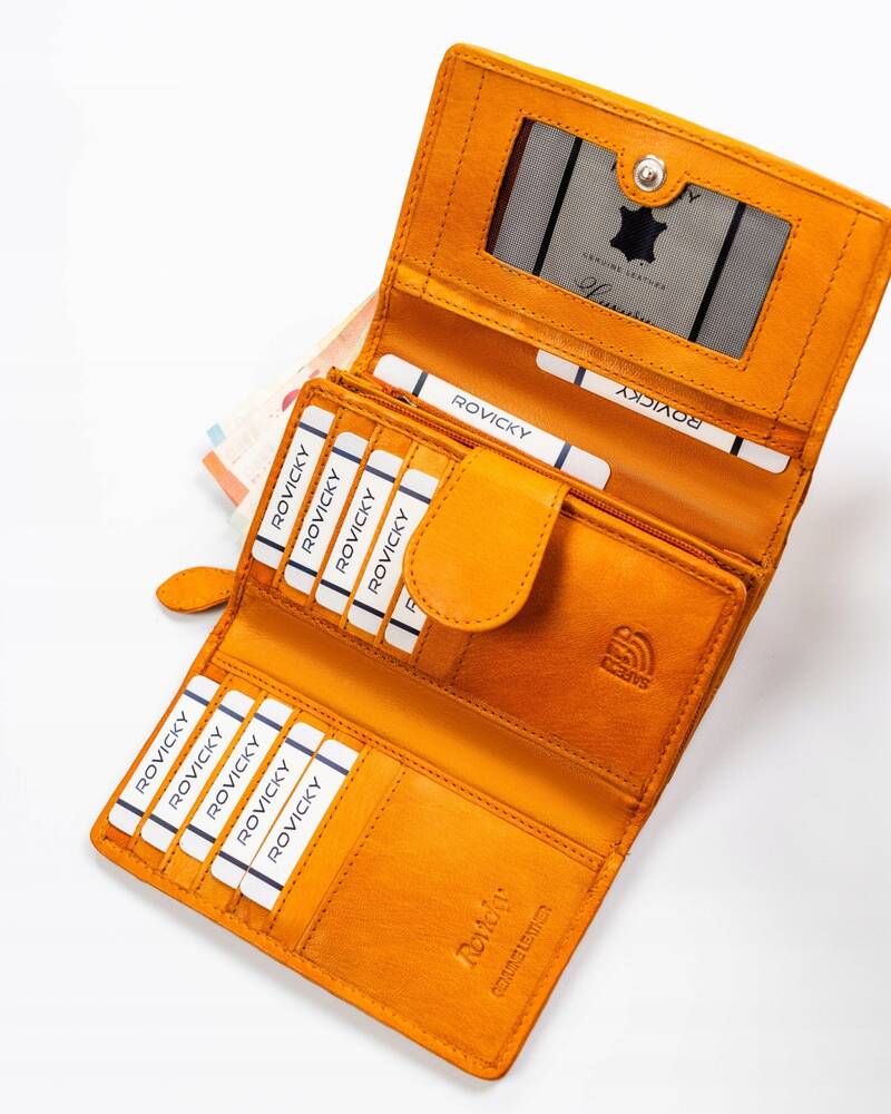 Ši elegantiška ir funkcionali piniginė moterims Rovicky L117 yra puikus pasirinkimas ieškantiems kokybės ir stiliaus. Pagaminta iš natūralios odos, ji ne tik atrodo prabangiai, bet ir yra ilgaamžė. Geltona spalva suteikia išskirtinumo, o vidutinis dydis užtikrina patogumą kasdieniam naudojimui. Su daugiau nei 10 kortelių skyrių ir RFID apsauga, jūsų kortelės bus saugios ir tvarkingai laikomos. Išmatavimai 10 cm x 15,5 cm x 4 cm leidžia patogiai nešiotis piniginę rankinėje ar kišenėje.