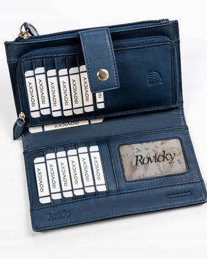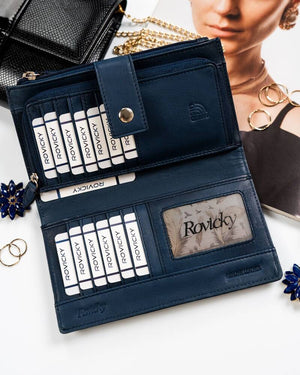 Elegantiška ir funkcionali moteriška piniginė iš Rovicky kolekcijos, pagaminta iš aukštos kokybės natūralios odos. Ši tamsiai mėlyna piniginė puikiai tiks tiek kasdieniam naudojimui, tiek ypatingoms progoms.