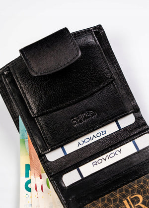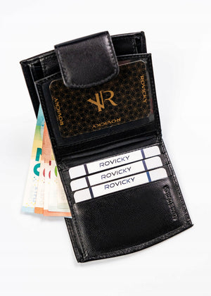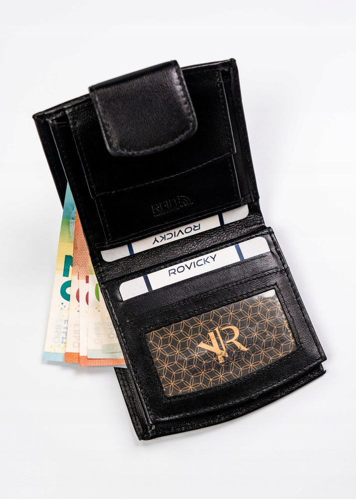 Ši elegantiška ir funkcionali moteriška piniginė iš Rovicky yra pagaminta iš aukštos kokybės natūralios odos. Juoda spalva suteikia klasikinį ir universalų stilių, tinkantį bet kokiai progai. Piniginėje yra 6-10 kortelių skyrių, todėl ji puikiai tinka kasdieniam naudojimui. Kompaktiški išmatavimai leidžia lengvai tilpti į rankinę ar kišenę.