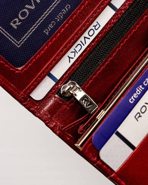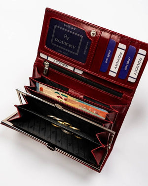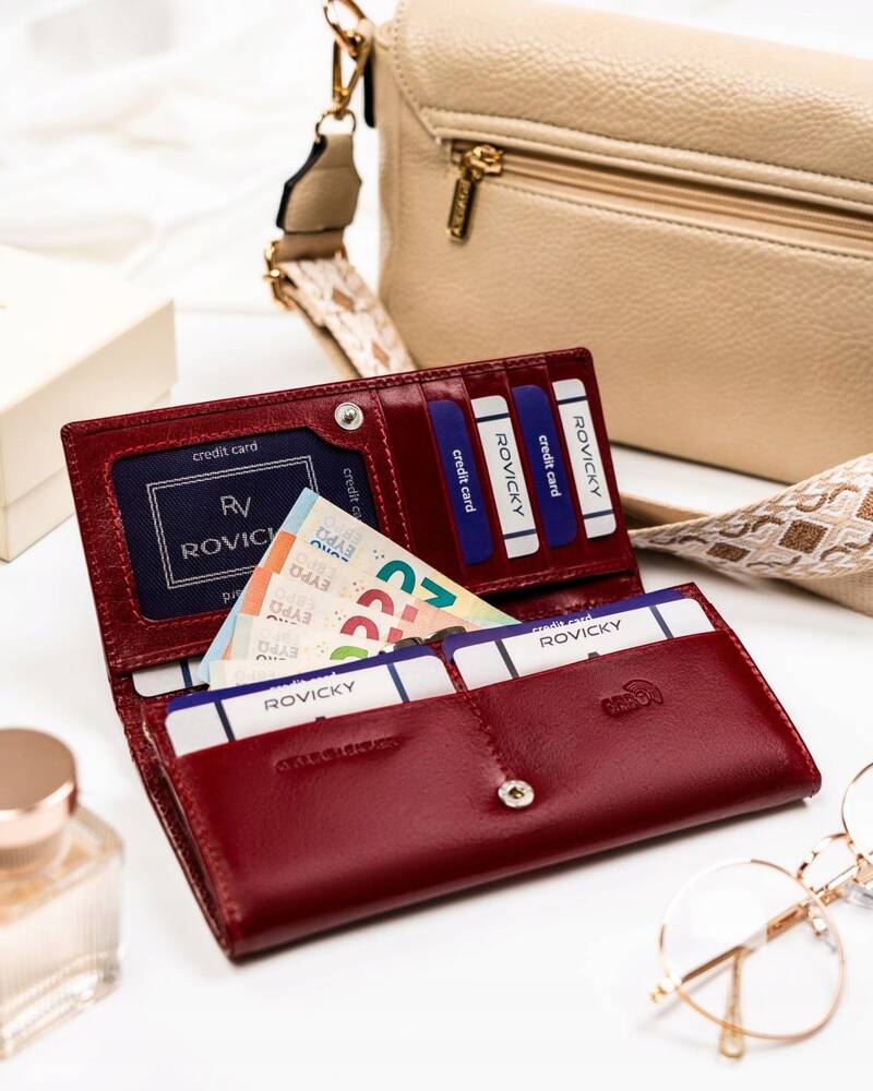 Ši elegantiška ir funkcionali moterų piniginė iš Rovicky yra pagaminta iš aukštos kokybės natūralios odos. Raudona spalva suteikia išskirtinumo ir stiliaus, o didelis dydis užtikrina, kad turėsite pakankamai vietos visiems savo daiktams. Piniginė turi 6-10 kortelių skyrius, todėl galėsite patogiai laikyti visas savo korteles. Be to, integruota RFID apsauga padės apsaugoti jūsų asmeninius duomenis nuo neteisėto nuskaitymo. Išmatavimai 9,5 cm x 18,5 cm x 3 cm leidžia piniginę patogiai nešiotis rankinėje ar kišenėje.
