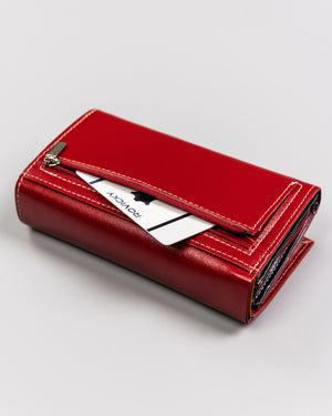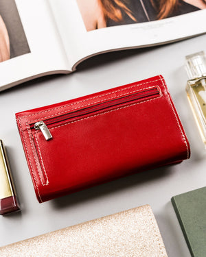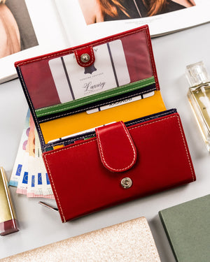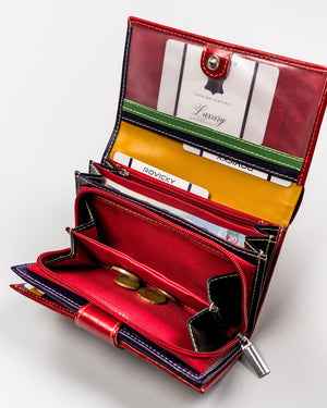 Ši elegantiška ir funkcionali piniginė yra puikus pasirinkimas moterims, vertinančioms kokybę ir saugumą. Pagaminta iš natūralios odos, ji ne tik atrodo prabangiai, bet ir yra ilgaamžė. Raudona spalva suteikia stiliaus ir išskirtinumo, o didelis dydis užtikrina, kad turėsite pakankamai vietos visoms savo kortelėms ir kitoms smulkmenoms.