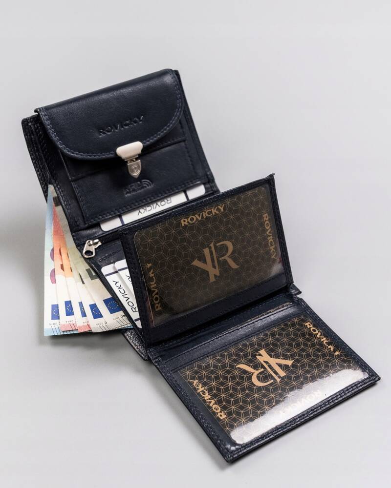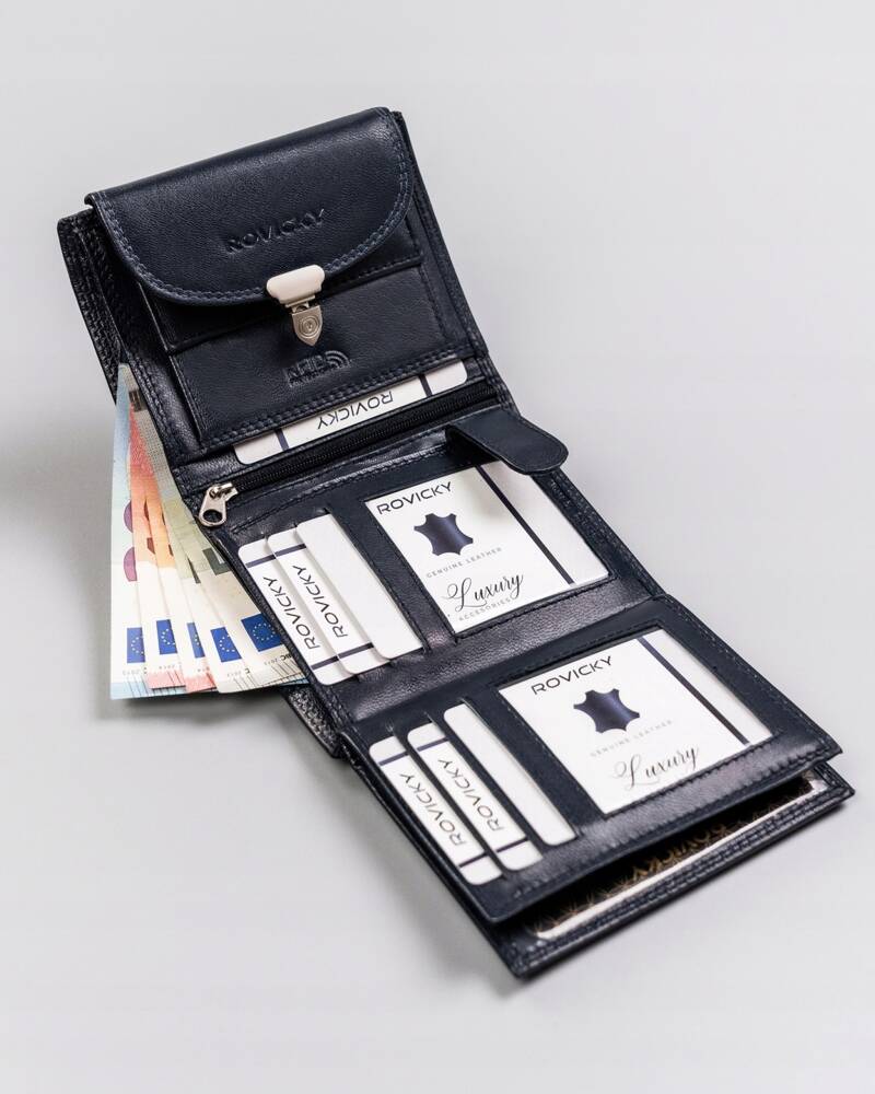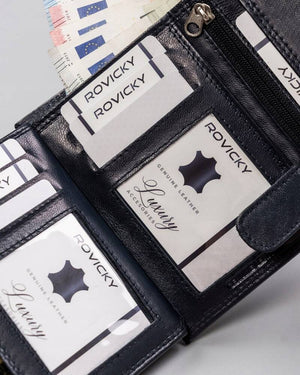 Ši elegantiška ir kompaktiška piniginė moterims Rovicky L166 yra puikus pasirinkimas tiems, kurie vertina kokybę ir funkcionalumą. Pagaminta iš natūralios odos, ji ne tik atrodo stilingai, bet ir yra ilgaamžė. Tamsiai mėlyna spalva suteikia piniginei išskirtinumo, o RFID apsauga užtikrina jūsų kortelių saugumą. Su daugiau nei 10 kortelių skyrių, ši piniginė patenkins visus jūsų poreikius.